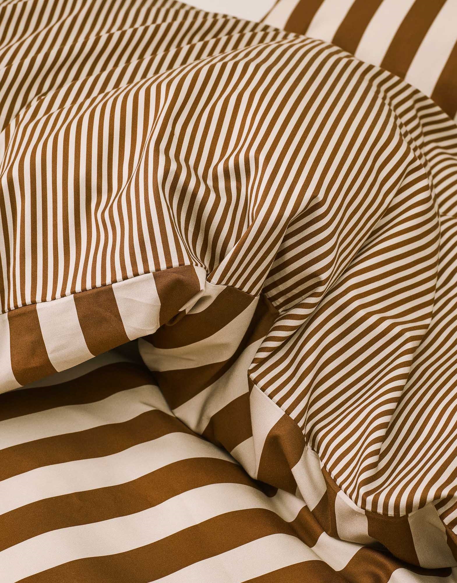 Forside »Sengetøy » Enkelt sengetøy » Enkelt sengetøy 140x200 cm Marc O'Polo sengetøy - 100% enzymvasket bomullssengesett - 140x200 cm - Classic Stripe Toffee Brown sengetøy Spar0% Marc O'Polo 1.199,001.199,00NOKSpar 0,- Få på lager Trustpilot Antall Legg i kurv Se mer fra: Marc O'Polo Artikkelnummer:8377-1 Har du spørsmål om produktet? OEKO-TEX-sertifisering100% enzymvasket bomullMyk og lekker kvalitet Dynetrekk: 140x200 cm Putetrekk: 1 stk. à 60x63 cm Materiale: 100% enzymvasket bomull Veving: Ekstra fin og myk 200TC percale (trådantall = antall tråder per kvadrattomme) Farge: Natur Design: Classic Stripe Toffee Brown Merke: Marc O'Polo Lukking: Dynetrekk lukkes med knapper og putetrekk med overlapp Vask: 60° Tørketrommel: Ja Kan strykes: Ja Sertifisering: STANDARD 100 by OEKO-TEX® (0906030 Centexbel) Deilig sengetøy fra det populære merket Marc O'Polo, så du er sikret god og lekker kvalitet. Sengesettet er laget av de fineste, tette bomullstrådene, noe som gir et fint og eksklusivt sengesett med stor slitestyrke. Mikkeli-serien er laget av enzymvasket bomullspercale, som gir et lett og svært mykt sengesett. Sengetøy fra Marc O'Polo er fargeekte, noe som betyr at det holder på fargen selv etter gjentatte vask. Sengesettet er dobbeltsidig, dvs. vendbart med ulike mønstre eller farger på hver side. Kjøp lette putetrekk til ekstra putene dine her Marc O'Polo er sannsynligvis mest kjent for sine klassiske klær for både menn og kvinner. Marc O'Polo har alltid stått for kvalitetsprodukter, noe som også gjelder innen boligtekstiler - Her får du sengetøy i et elegant og stilrent design. Gi sengen og soverommet et løft med et flott og deilig sett sengetøy som dette. Benytte samtidig anledningen til å sikre maksimal sovekomfort ved å legge til et nytt mykt laken av høy kvalitet. Du finner vårt store utvalg av laken her Tilbake til Enkelt sengetøy 140x200 cm