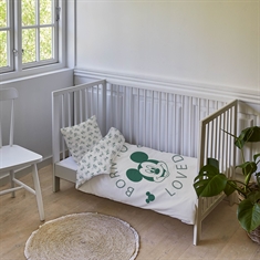 Forside »Sengetøy Mickey sengetøy 100x140 cm - Juniorsengesett med Mickey Mouse - Vendbart motiv - 100% bomull sengelinned Spar30% Licens 499,00349,00NOKSpar 150,- På lager Trustpilot Antall Legg i kurv Se mer fra: Licens Artikkelnummer:1274-8 Les vår sengetøyguide Se vårt store utvalg av lagner Se vårt store utvalg av dyner 100x140 Har du spørsmål om produktet? Mykt & pustende100% myk bomullOEKO-TEX® sertifisert Dynetrekk: 100x140 cm - juniorsengesett Putetrekk: 40x45 cm Materiale: 100% myk bomull Farge: Hvit og grønn Motiv: Mickey Mouse Design: Vendbart - Forside med motiv av Mickey Mouse og bakside med små motiver Lukking: Dyne med knapper og putetrekk med overlapp Vask: 60° Tørketrommel: Ja Tåler stryking: Ja Sertifisering: STANDARD 100 by OEKO-TEX® (2022OK2496 AITEX). Din garanti for at produktet er fritt for helseskadelig kjemi. Mykt juniorsengetøy i 100% bomull, med et smart og gjenkjennelig design av Mickey Mouse. Produsert med lette og pustende bomullsfibre gir sengesettet en følelse av mykhet som gjør at dynen vil falle naturlig rundt barnet ditt. Balansen i naturlig komfort fra det myke materialet og det koselige Mickey-designet gjør dette settet til en sikker favoritt hos barnet ditt. Gjør leggetiden ekstra koselig med dette Mickey Mouse juniorsengetøyet. Sengsettet er i 100% myk bomull, som sikrer god komfort hele natten. Materialet er pustende, slitesterkt og holder fargene fine - selv etter mange vask. Sengetøyet er perfekt for barn som elsker Mickey Mouse. Sengetøyet har en fin farge med et flott motiv av Mickey og teksten Born To Be Loved på forsiden. På baksiden er det et heltrykk med små motiver av Mickey Mouse. Bomullssengetøy kan vaskes på 60° i vaskemaskin, noe som også bidrar til å opprettholde et høyt hygienisk nivå. Sengetøyet er i tillegg produsert med OEKO-TEX-sertifisering, som er din garanti for at settet er fritt for skadelig kjemi. Se etter favorittene og mye mer i vårt store utvalg av tilbehør til barnerommet For barnet bør sengen være et trygt sted, og alle elementene skal sammen skape myke og gode omgivelser for barnet å finne ro i. Bruk gjerne barnets interesser for å skape et trygt soverom. Hos oss finner du et stort utvalg av tilbehør til sengen og barnerommet, fra lagner til dyner, puter, sengetøy og mye mer, med mange produkter med alle barnas favoritter. Alt sammen elementer som kan bidra til å skape riktig sovemiljø og rom for ditt barn. Her kan du finne deilige og myke kvalitetslagner Tilbake til Sengetøy