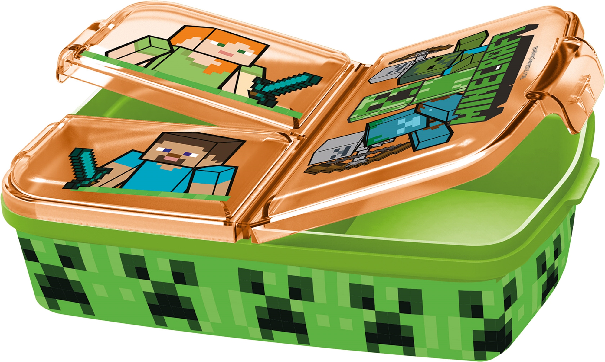Forside »Innredning » Barnerommet Minecraft matboks - Alex og Steve - matboks med 3 rom for barn Spar43% Licens 349,00199,00NOKSpar 150,- På lager Trustpilot Antall Legg i kurv Se mer fra: Licens Artikkelnummer:40420 Har du spørsmål om produktet? Minecraft-designBPA-fri plastPraktisk rominndeling Type: Matboks Matboks: H5,5 cm - B13,5 cm - L18,5 cm Rom: 3 Rominndeling: ja, ikke justerbar Lokk: 1 avtagbart lokk Materiale: Plast, BPA-fri Farge: Oransje og grønn Design: Minecraft Alder: 4+ Barnematboks – Morsom og trygg løsning til de små Minecraft-matboksen er en praktisk og sikker løsning til barnets lunsj. Med et lekkert design er det en matboks som vil glede ethvert barn. Matboksen er delt inn i tre rom, noe som gjør det enkelt å skille ulike typer mat, en praktisk løsning for en variert lunsj. BPA-fri plast Denne matboksen er laget av BPA-fri plast, som sikrer at barnet ditt kan spise uten at du trenger å bekymre deg for skadelige kjemikalier. BPA-fri plast er et trygt og slitesterkt materiale for matbokser. Plasten er også lett, noe som gjør matboksen lett å bære, men robust nok til daglig bruk. Design med Minecraft Det barnevennlige designet gjør matboksen mer attraktiv for de minste. Det kan motivere dem til å spise lunsjen sin, samt gjøre lunsjpausen mer innbydende og morsom. Vurder også å se i kategorien vår vannflasker. Tilbake til Barnerommet