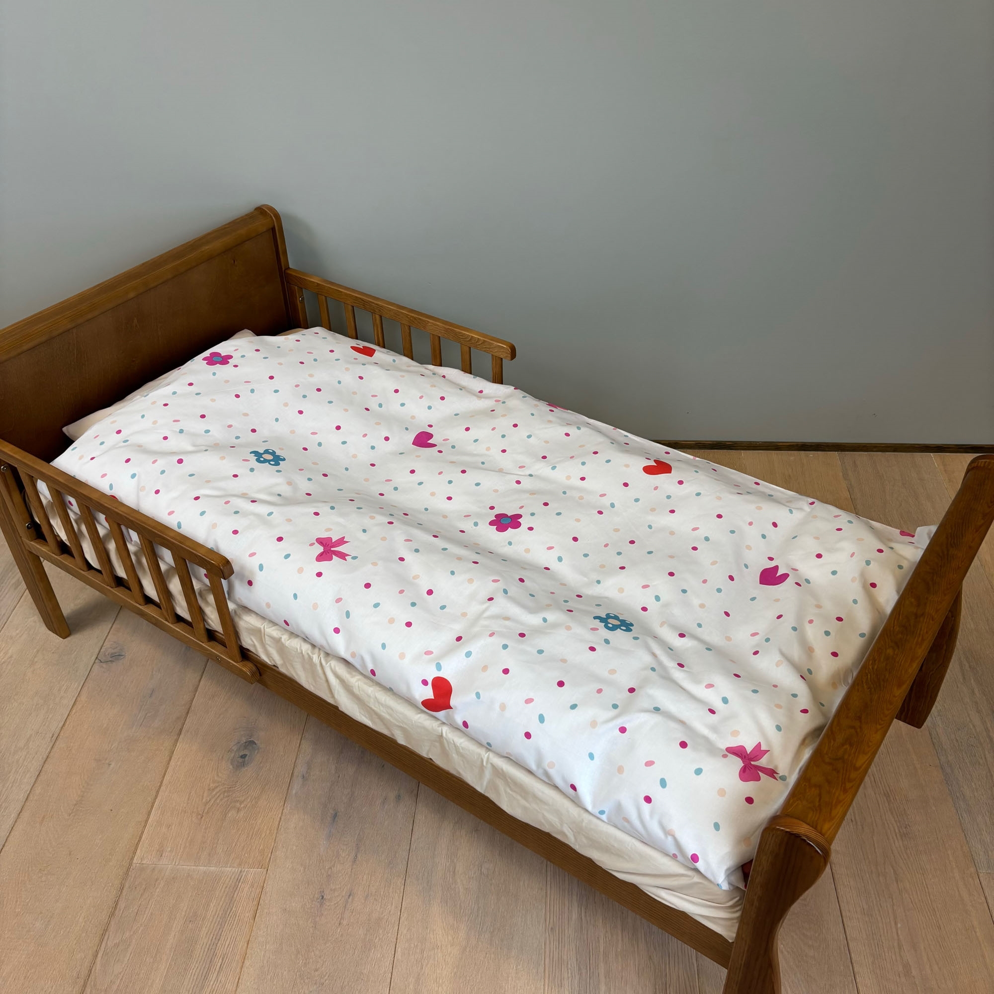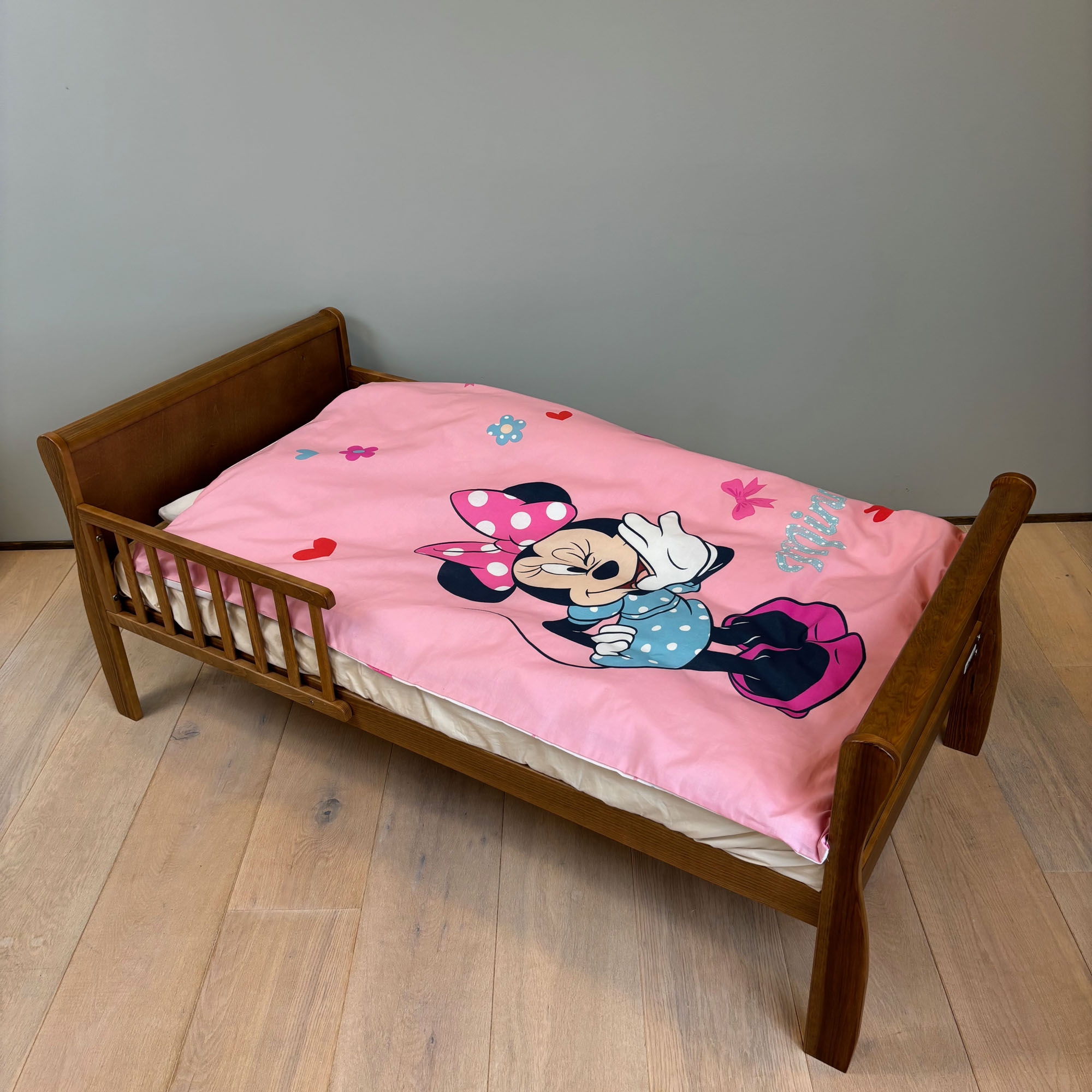 Forside »Sengetøy » Sengetøy til barn » Junior sengetøy 100x140 cm Minnie sengetøy 100x140 cm - Junior sengesett med Minnie Mouse - Vendbart motiv - 100% bomulls sengetøy Spar40% Licens 499,00299,00NOKSpar 200,- På lager Trustpilot Antall Legg i kurv Se mer fra: Licens Artikkelnummer:1969-8 Les vår sengetøyguide Se vårt store utvalg av laken Se vårt store utvalg av dyner 100x140 Har du spørsmål om produktet? Mykt & pustende100% myk bomullOEKO-TEX® sertifisert Dynetrekk: 100x140 cm Putetrekk: 40x45 cm Materiale: 100% myk bomull Farge: Lyserosa Motiv: Minnie Mouse Design: Vendbart - Forside med motiv av Minnie Mouse og bakside med små motiver Lukking: Dyne med knapper og putetrekk med overlapp Vask: 60° Tørketrommel: Ja Tåler stryking: Ja Sertifisering: STANDARD 100 by OEKO-TEX® (2011PK0073 AITEX). Din garanti for at produktet er fritt for helseskadelige stoffer. Mykt junior sengetøy i 100% bomull, med et smart og gjenkjennelig design av Minnie Mouse. Produsert med lette og pustende bomullsfibre gir sengesettet en følelse av mykhet, som gjør at dynen vil falle naturlig rundt barnet ditt. Balansen i naturlig komfort fra det myke materialet og det koselige Minnie-designet gjør dette settet til en sikker favoritt hos barnet ditt. Gjør leggetiden ekstra koselig med dette søte Minnie Mouse sengetøyet i 100% bomull. Perfekt for barn som elsker Disney og den ikoniske Minnie Mouse med sin fine sløyfe og sjarmerende smil. Sengetøyet har flotte farger med et herlig motiv av Minnie, som skaper en koselig og trygg stemning på barnerommet. Det myke bomullsstoffet sikrer god komfort hele natten. Materialet er pustende, slitesterkt og holder fargene fine - selv etter mange vask. Sengsettet er OEKO-TEX® sertifisert og testet fritt for skadelige stoffer, så barnet ditt trygt kan sove med det hver natt. Bomullssengetøy kan vaskes på 60° i vaskemaskin, noe som også bidrar til å opprettholde et høyt hygienisk nivå. Sengetøyet er i tillegg produsert med OEKO-TEX sertifisering, som er din garanti for at settet er fritt for skadelig kjemi. Gå på jakt etter favorittene og mye mer i vårt store utvalg av tilbehør til barneuniverset For barnet bør sengen være et trygt sted og alle elementene skal sammen skape myke og fine omgivelser for barnet å finne ro i. Bruk derfor gjerne barnets interesser til å skape et trygt soverom for barnet. Hos oss finner du et stort utvalg av tilbehør til sengen og barnerommet, fra laken til dyner, puter, sengetøy og mye mer, og masse produkter med alle barnas favoritter på. Alt sammen elementer som kan bidra til å skape det rette sovemiljøet og rommet for ditt barn. Her kan du finne deilige og myke kvalitetslaken Tilbake til Junior sengetøy 100x140 cm Du kan også være interessert i: Junior sengetøy 100x140 cm - Mykt hvitt sengesett i 100% egyptisk bomullssatin - Turiform sengetøyHøy kvalitet Ekstra fin, myk & pustende Jacquardvevd 799,00 NOK485,00 NOK Formsydd laken 70x140 cm - Hvit - 100% ekstra fin bomullssateng - Formsydd laken til juniormadrassFormsydd laken - Hvit 100% bomullssateng 70x140x15 cm Veiledende utsalgspris : 434,00 Spar : 35,00 599,00 NOK399,00 NOK Madrassbeskytter junior - 70x140 cm - Kokesikker bomull - Borg LivingPustende og allergivennlig Myk bomull OEKO-TEX®-sertifisert Veiledende utsalgspris : 434,00 Spar : 85,00 599,00 NOK349,00 NOK Juniordyne - Moskusdun - 100x140 cm - Helårs juniordyne - Borg Living dundyne100 % moskusdundyne Bæreevne: over 12 Helårsdyne Veiledende utsalgspris : 1.594,00 Spar : 609,00 2.599,00 NOK985,00 NOK