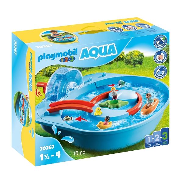 Forside »Leketøy » Playmobil » PLAYMOBIL 1.2.3 Muntert vannland - PL70267 - PLAYMOBIL 1.2.3 Playmobil 123 Knallpris:1.019,00NOK Få på lager Trustpilot Antall Legg i kurv Se mer fra: Playmobil 123 Artikkelnummer:LEGPL70267 Har du spørsmål om produktet? Vannkanalbanen garanterer massevis av moro og lek! Morsomme vannteksperimenter for de yngste. De røde markeringene på elementene gjør det enkelt å få øye på de forskjellige funksjonene. Når barnet vrir på håndtaket (begge retninger) dannes det strøm i vannkanalen som setter skip og dyr i bevegelse. Fisk og små blekkspruter gjemmer seg og svømmer gjennom vannkanalen, for plutselig å dukke opp på den andre siden igjen. Kan kombineres med 70269 Vannvippe med vannkanne, 70270 Vannsklie og 70271 Andefamilie. Den perfekte størrelsen for hagen eller balkongen. x Tilbake til PLAYMOBIL 1.2.3