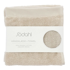 Den myke og fyldige kvaliteten på 500 g/m² gir en behagelig følelse mot huden, mens den høye absorberingsevnen sikrer at hendene tørkes raskt. Den elegante beige fargen og den diskrete vevde kanten med Södahls logo gir et stilrent og eksklusivt uttrykk til baderommet.