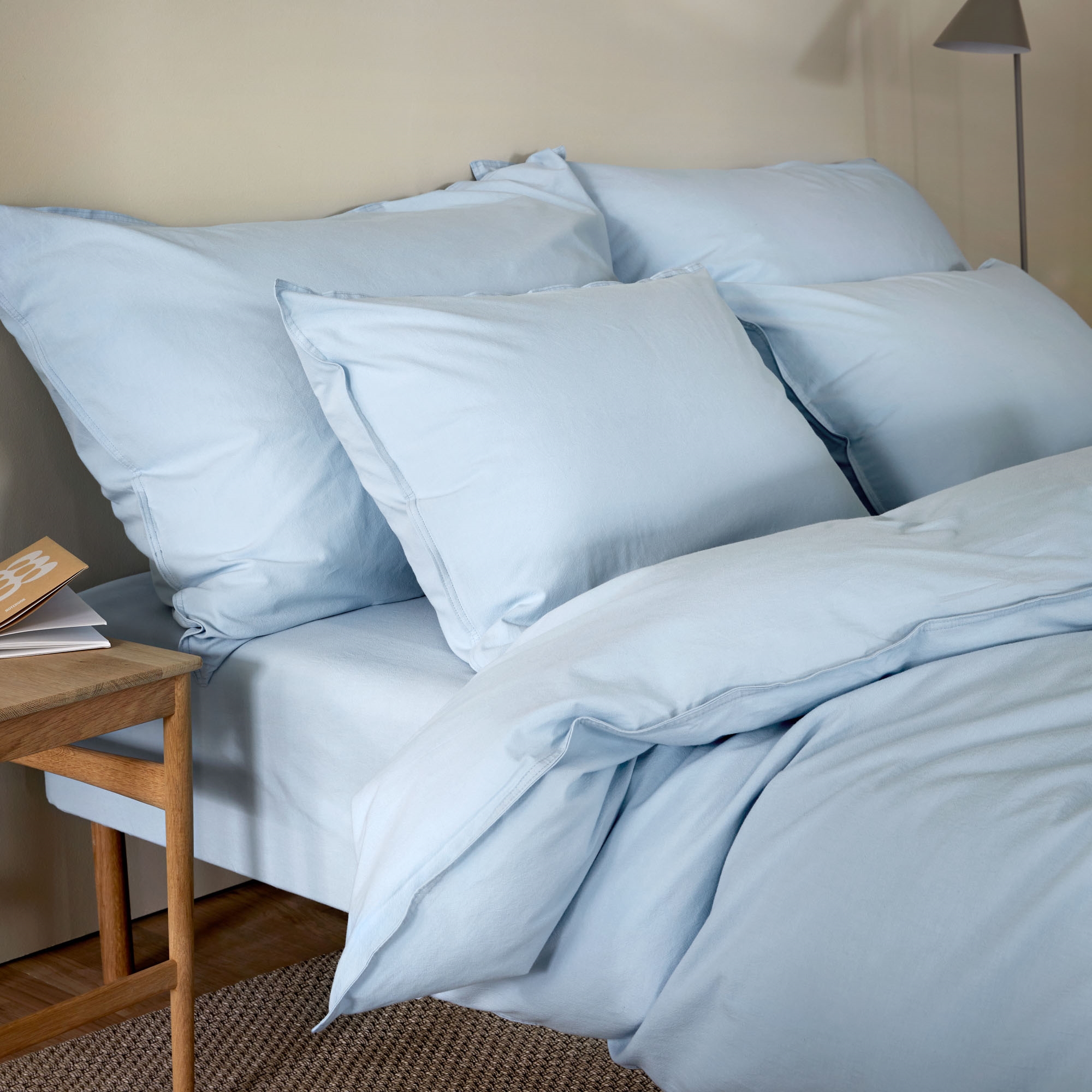Forside »Sengetøy » Enkelt sengetøy » Ekstra langt sengetøy 140x220 cm Økologisk sengetøy 140x220 cm - 100% steinvasket bomull - Frøya lyseblå - Sengetøy fra Høie of Scandinavia Spar23% Høie Of Scandinavia 1.299,00999,00NOKSpar 300,- På lager Trustpilot Antall Legg i kurv Se mer fra: Høie Of Scandinavia Artikkelnummer:7920-2 Les vår sengetøyguide Se vårt store utvalg av laken Har du spørsmål om produktet? Steinvasket bomull - For et rått utseendeEkstra fin vevingSvanemerket Dynetrekk: 140x220 cm Putetrekk: 1 stk. á 60x63 cm Materiale: 100% steinvasket, økologisk bomull Veving: Ekstra fin 300TC (Thread count = antall tråder pr. kvadrattomme) Farge: Lyseblå Design: Frøya Light Blue Brand: Høie of Scandinavia Lukking: Dynetrekk med knapper, putetrekk med overlapp Vask: 60° Tørketromling: Ja Stryking: Ja Sertifisering: Svanemerket (2112 0008) Sertifisering: MADE IN GREEN by OEKO-TEX® (M1VLV2KU7 Hohenstein). Din garanti for at produktet er fri for helseskadelig kjemi. Deilig sengetøy i 100% økologisk bomull, som både er skånsomt for miljøet og mykt mot huden. Sengetøyet er garnfarget hvilket sikrer en holdbar farge, som forblir pen, vask etter vask. Det steinvaskede utseendet gir en myk og lett krøllet overflate. Godt å vite er at i Frøya-serien brukes 30% mindre vann enn tradisjonelle fargemetoder. Frøya-serien er produsert av 100% økologisk bomull, som er garnfarget og steinvasket, hvilket mykgjør fibrene og nettopp den unike behandlingen gjør at sengetøyet får det helt riktige stonewashed finish og utseende og et naturlig krøllet utseende. Det at settet er garnfarget betyr at bomullstråden blir farget før vevingen. Det er valgt bomull, som er kjent for sin renhet og høye slitestyrke, og de ekstra fine bomullstrådene føles behagelige mot huden. Hvis du liker et rått sengetøy, som du kan elske år etter år, er det Frøya-serien du skal la skinne i soverommet. Steinvasken gir også sengetøyet et mer avslappet utseende, som krøller på den helt riktige måten. Godt å vite er at i Frøya-serien brukes 30% mindre vann enn tradisjonelle fargemetoder - og at det er Svanemerket for en bedre morgendag. Sengetøyet er OEKO-TEX sertifisert, hvilket betyr at det er testet fri for helseskadelige kjemikalier. Dette er et tegn på ansvarlig produksjon, som ikke bare gagner miljøet, men også for vår kropp og hud, da det reduserer risikoen for allergiske reaksjoner. Se det store sortimentet fra Høie her Høie er et skandinavisk merke som står for tradisjon forent med nytenkning. Firmaet har eksistert siden 1850 og har gjennom årene vært med på å forme og utvikle skandinavisk tekstil og design. Sengetøy fra Høie er hverdagsluksus som alle fortjener. Finn kvalitetslaken her Tilbake til Ekstra langt sengetøy 140x220 cm