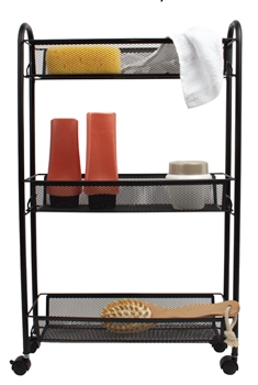 Oppbevaring har etter hvert blitt et nøkkelord i ethvert hjem. Vi har begynt å organisere og rydde opp i tingene våre som aldri før, og det har blitt veldig populært med rullevogner, ulike bokser, trådkurver og andre oppbevaringsløsninger til alle tingene våre. Oppbevaring på badet ditt, og for den del også i resten av huset, gir deg langt bedre oversikt over eiendelene dine. Når du har funnet de rette oppbevaringsløsningene, kan du enkelt systematisere tingene dine etter kategorier, farger, navn eller hva som enn fungerer best for deg. På denne måten kan du raskt finne akkurat de tingene du trenger, og unngå å lete etter dem i en stor rotete skuff eller eske.Her på denne siden finner du våre rullevogner og ulike trådkurver, som er den perfekte oppbevaringsløsningen til badet. Vi har både trådkurver til å henge opp, samt trådkurver til rullevognen vår. Våre rullevogner og trådkurver kommer i klassisk sort metall og er enkle å kombinere med lekkert hjeminteriør. Vår rullevogn og ulike trådkurver kommer i flere størrelser, så avhengig av hva du trenger å oppbevare, kan du finne en rullevogn eller trådkurv som oppfyller dine behov.