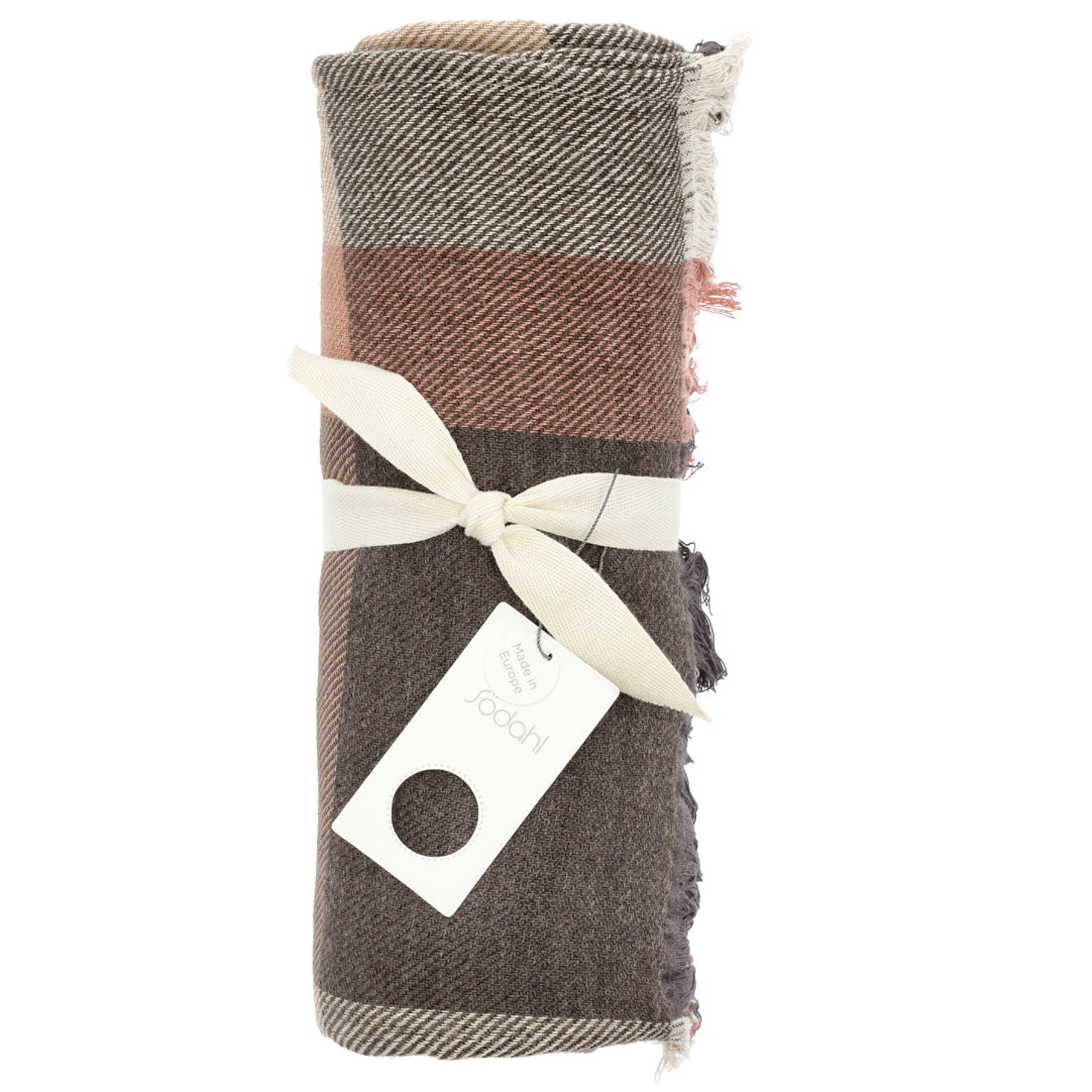 Det store rutemønsteret gir et stilfullt og karakterfullt uttrykk som tilfører dybde og varme i hjemmet ditt. De fine brune fargene gjør det enkelt å kombinere med andre tekstiler. Pleddet er OEKO-TEX®-sertifisert, noe som er din garanti for at produktet er fri for skadelig kjemi.
