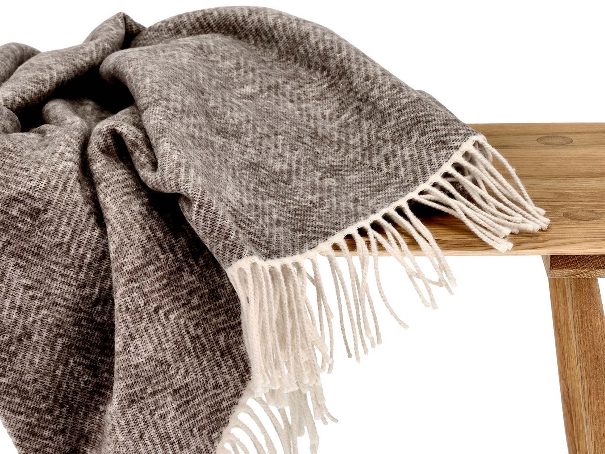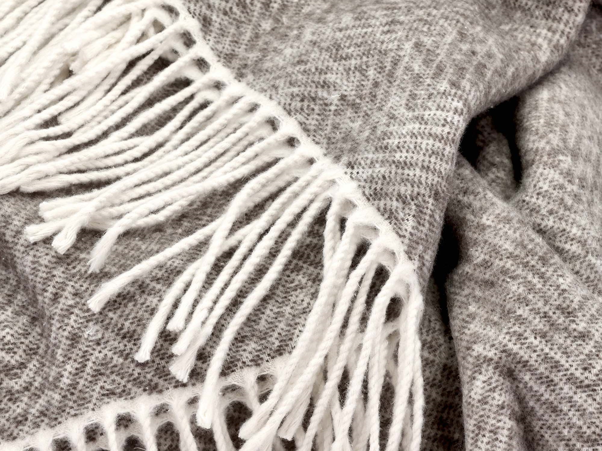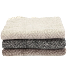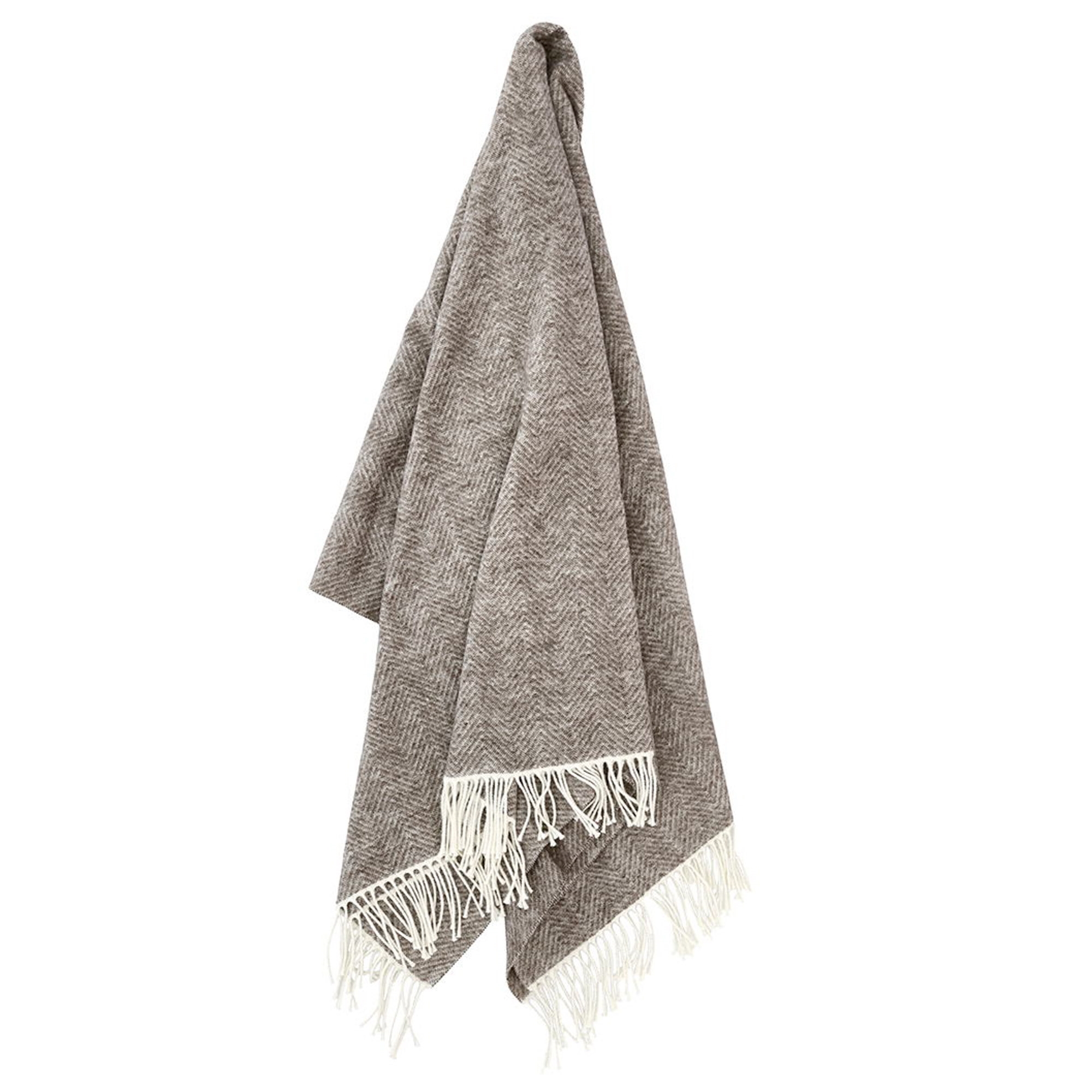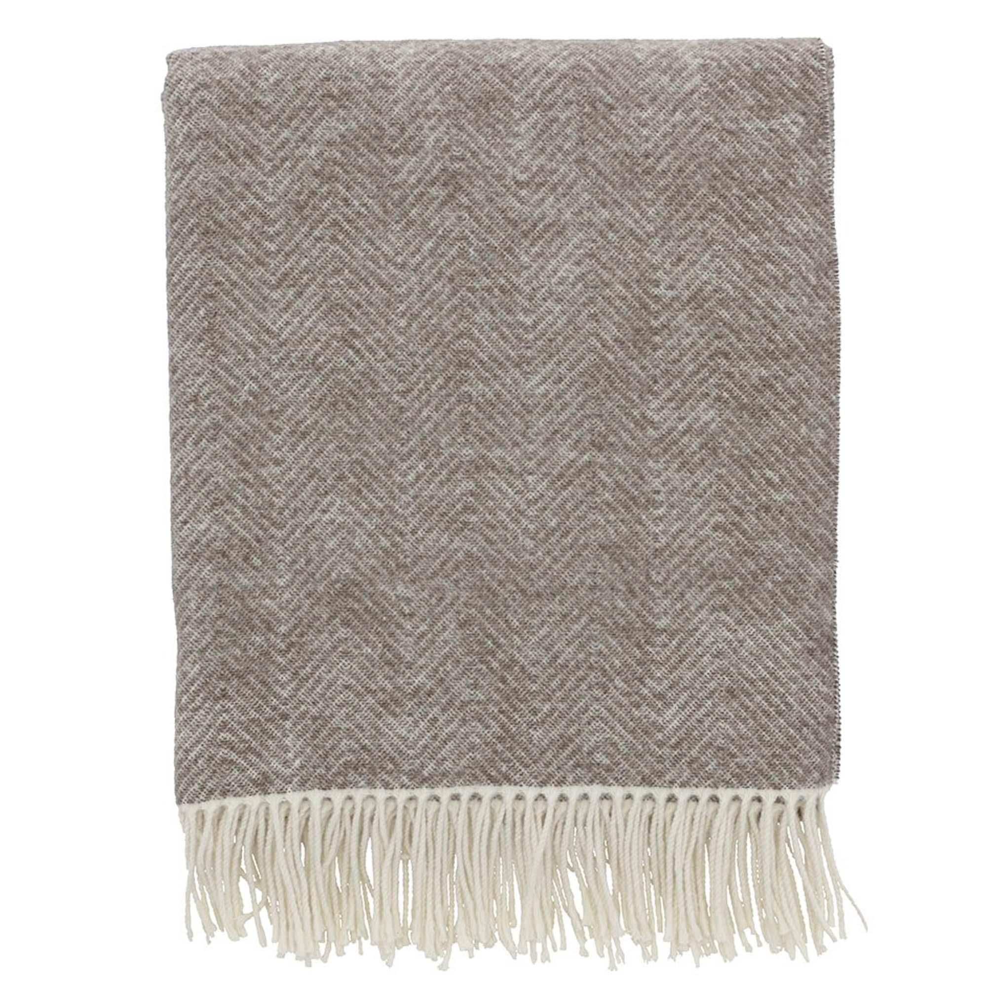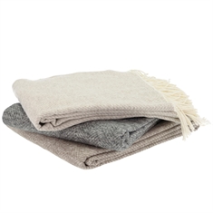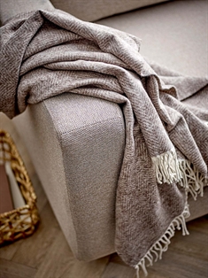 Den rolige beige fargen og det elegante sildebensmønsteret skaper en hyggelig atmosfære og gjør pleddet enkelt å kombinere med øvrige tekstiler i hjemmet.