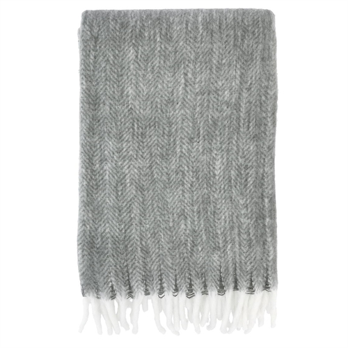 Den børstede kvaliteten gir en ekstra myk og fyldig tekstur, som gjør pleddet ideelt for avslapning - enten du sitter i sofaen, leser en bok eller nyter en kveld foran TV-en. Det tradisjonelle sildebensmønsteret og de lange, dekorative frynsene tilfører et eksklusivt og koselig uttrykk, som passer perfekt inn i både moderne og klassiske hjem.