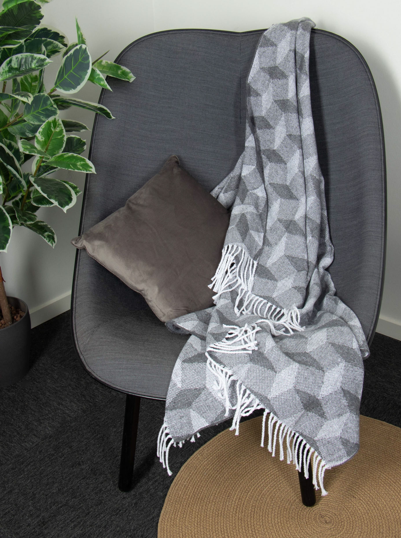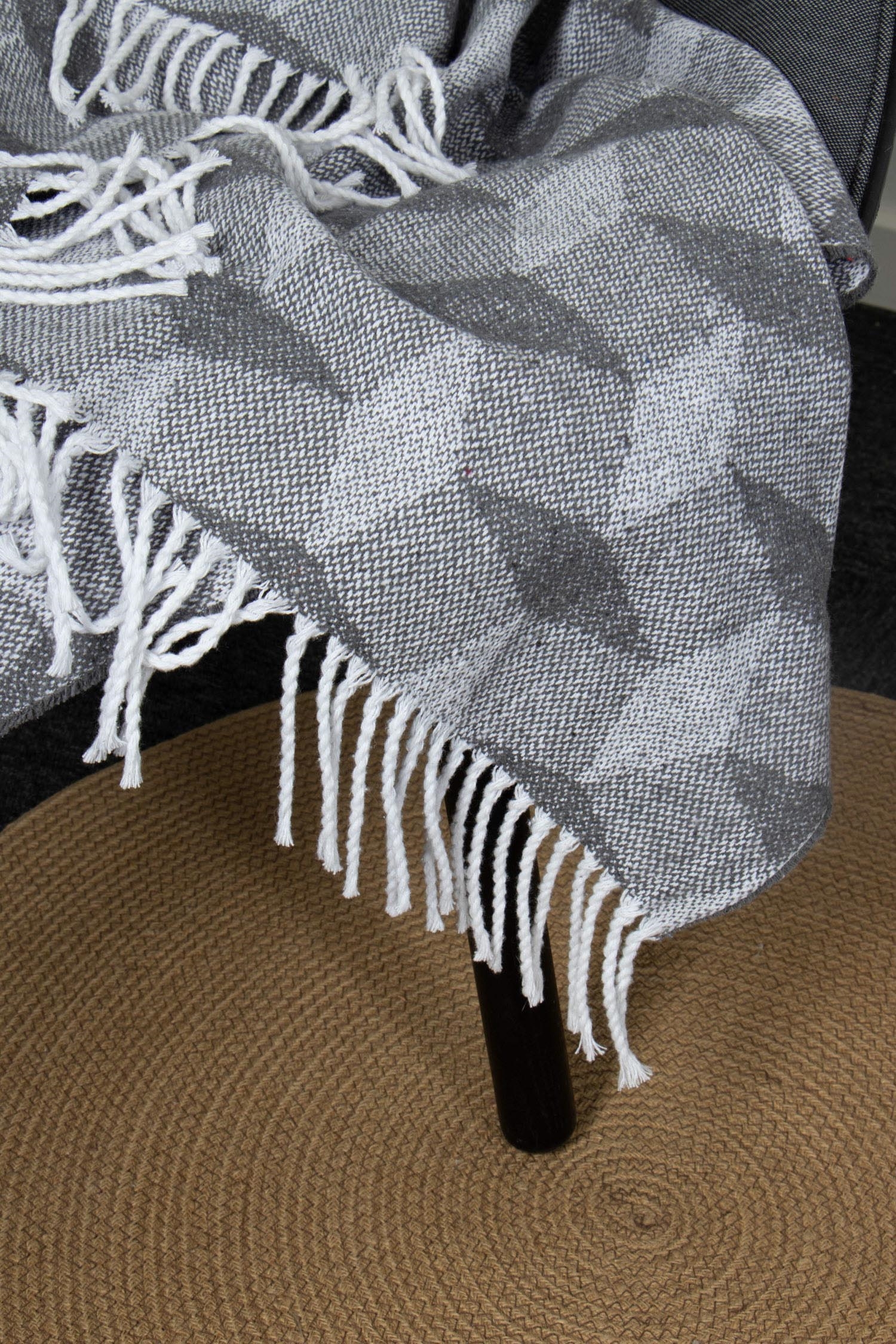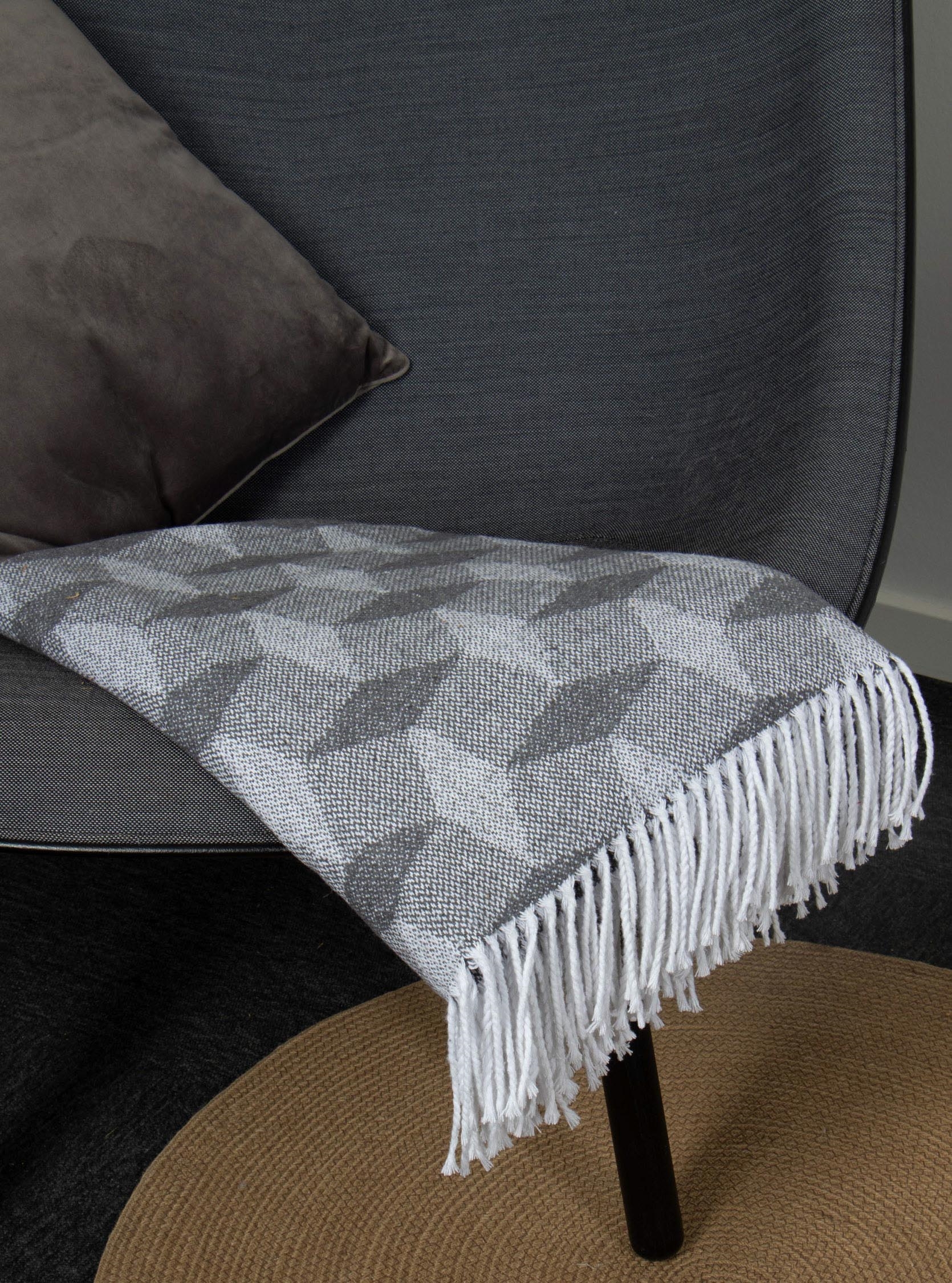 Pledd i myk bomull - 130x200 cm - Mykt bomullspledd med grafisk mønster i grå fra Nordstrand Home