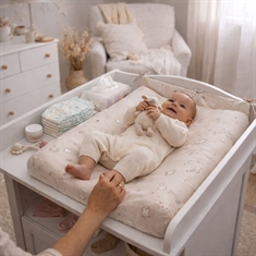 Den vannavvisende overflaten gjør det enkelt å tørke små uhell bort med en fuktig klut. Materialet er slitesterkt og holder formen, selv ved daglig bruk. Kombinasjonen av komfort og funksjonalitet gjør pusleputen ideell for både raske bleieskift og koselige stunder ved stellebordet.