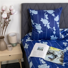 Skap et rolig og eksklusivt uttrykk på soverommet med dette blomstrete luksus putetrekket i 100% bomullssatin fra By Borg. Det stilfulle blomstrete og stripete designet i blått gir et tidløst uttrykk som passer perfekt inn i både moderne og klassiske soverom.