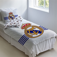 Forside »Sengetøy » Enkelt sengetøy » Enkelt sengetøy 150x210 cm (svenske mål) Real Madrid sengetøy - 150x210 cm - Hvitt vendbart sengesett med logo - 100% bomull sengetøy - Fotball sengetøy Spar20% Licens 499,00399,00NOKSpar 100,- På lager Trustpilot Antall Legg i kurv Se mer fra: Licens Artikkelnummer:22233-3 Les vår sengetøysguide Se vårt store utvalg av laken Se vårt store utvalg av dyner Har du spørsmål om produktet? Perfekt for fotballfanen100% myk bomullOEKO-TEX® sertifisert Dynetrekk: 150x210 cm - svensk størrelse Putetrekk: 50x60 cm Materiale: 100% myk bomull Farge: Hvit og blå Motiv: Real Madrid logo Design: Vendbar - Forside med Real Madrids logo, bakside med all-over print Lukking: Dyne med knapper og putetrekk med overlapp Vask: 60° Tørketromling: Ja Tåler stryking: Ja Sertifisering: STANDARD 100 by OEKO-TEX® (11-31077 Shirley). Din garanti for at produktet er fri for helseskadelig kjemi. Mykt sengetøy i 100% bomull, med design av Real Madrid logoen. Perfekt for den lille fotballfanen som elsker å spille. Produsert med lette og pustende bomullsfibre gir det sengesettet en følelse av mykhet, som gjør at dynen vil falle naturlig rundt barnet ditt. Balansen i naturlig komfort fra det myke materialet og det koselige fotballdesignet, gjør dette settet til en sikker favoritt hos barnet ditt. Vis din støtte til favoritt fotballaget med dette Real Madrid sengetøyet. Sengetøyet er vendbart med et stort logo på forsiden og et all-over print på baksiden. Sengesettet er produsert i 100% ren bomull, hvilket sikrer høy pusteevne, slitestyrke og en myk og behagelig overflate. Sengesettet er også OEKO-TEX sertifisert, hvilket er din garanti for at settet er fri for skadelige stoffer, så det er trygt å bruke. Se vårt store utvalg av tilbehør til barneuniverset For barnet er sengen et trygt sted. Alle elementene skal til sammen skape skjønne og deilige omgivelser for barnet å finne ro i. Hos HOME-TEX kan du finne alt tilbehør til sengen, som er med til å skape det rette sovemiljøet for barnet ditt. Her kan du finne lekre og myke kvalitetslaken Tilbake til Enkelt sengetøy 150x210 cm (svenske mål)