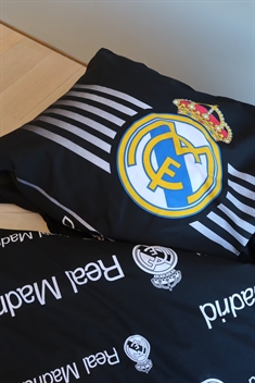 Forside »Sengetøy » Sengetøy til barn » Sengetøy til barn 140x200 cm Real Madrid sengetøy - 100% bomull - Barnesengetøy 140x200 cm - Sort fotball sengetøy Spar20% Licens 499,00399,00NOKSpar 100,- På lager Trustpilot Antall Legg i kurv Se mer fra: Licens Artikkelnummer:2973-1 Les vår sengetøysguide Se vårt store utvalg av laken Se vårt store utvalg av dyner Har du spørsmål om produktet? Myk kvalitet som føles behagelig hele nattenPustende materiale som gir en komfortabel søvnVendbart design for to uttrykk Dynetrekk: 140x200 cm Putetrekk: 60x63 cm Materiale: 100% myk bomull Farge: Sort Design: Real Madrid Vendbart: - Forside: Print av Real Madrids logo - Bakside: Fullt print med små logoer Lukking: Dynetrekk med knapper og putetrekk med overlapp Vask: 60° Tørketrommel: Ja Tåler stryking: Ja Sertifisering: STANDARD 100 by OEKO-TEX® (17.HPK.23879). Din garanti for at produktet er fritt for helseskadelig kjemi. Real Madrid sengetøy 140x200 cm – Sort vendbart sengetøysett for fotballfans Dette barnesengesettet er laget i 100% myk bomull, som kombinerer høy komfort med slitesterk kvalitet. Den rene bomullen gjør sengetøyet pustende og behagelig mot huden, så barnet ditt får de beste forutsetningene for en god og trygg natts søvn. Når du velger barnesengetøy i 100% bomull, får du: Myk og behagelig kvalitet mot huden Høy pusteevne for et sunt sovemiljø Slitesterkt materiale som tåler vask etter vask Barnesengetøy må kunne tåle litt av hvert. Derfor kan vårt bomullssengetøy vaskes ved 60°, noe som bidrar til å sikre et høyt hygienisk nivå. Den høye vasketemperaturen hjelper med å fjerne bakterier og holder sengetøyet friskt og rent. Alt vårt barnesengetøy i 140x200 er OEKO-TEX-sertifisert. Det er din garanti for at sengetøyet er testet og fritt for skadelige kjemikalier. Når du velger OEKO-TEX-sertifisert sengetøy, velger du trygghet og sikkerhet for barnet ditt. Gjør leggetid til en seier med dette Real Madrid sengetøyet 140x200 cm i sort farge. Perfekt for barn og unge som elsker Real Madrid og vil vise sin lidenskap for fotball på rommet. Se etter favorittene og mye mer i vårt store utvalg av tilbehør til barnerommet Tilbake til Sengetøy til barn 140x200 cm