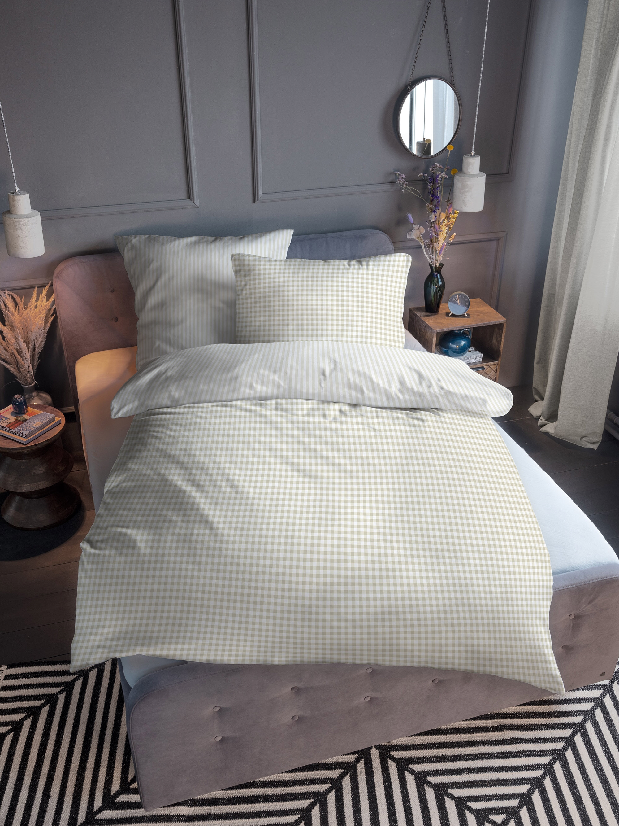 Forside »Sengetøy » Enkelt sengetøy » Enkelt sengetøy 140x200 cm Rutete sengetøy 140x200 cm - Stripete sengetøy i 100% bomull - Beige - Vendbart design - Tom Tailor Spar31% Tom Tailor 799,00549,00NOKSpar 250,- Få på lager Trustpilot Antall Legg i kurv Se mer fra: Tom Tailor Artikkelnummer:6826-1 Les vår sengetøyguide Se vårt store utvalg av laken Se vårt store utvalg av dyner 140x200 Har du spørsmål om produktet? Klassisk og elegant sengetøyGlidelåslukkingNostalgisk design Dyne: 140x200 cm Putetrekk: 1 stk. á 60x63 cm Materiale: 100 % bomull Farge: Beige og hvit Design: Rutete på den ene siden og stripete på den andre Merke: Tom Tailor Lukking: Dyne- og putetrekk med skjult YKK-glidelås Vask: 60° Tørketrommel: Ja Kan strykes: Ja Sertifisering: STANDARD 100 by OEKO-TEX® (A95-0048 Hohenstein HTTI) Frisk opp soverommet eller gjesterommet med dette klassiske sengetøyet. Dette Tom Tailor sengesettet er laget av den fineste og reneste bomull, noe som gjør sengesettet ekstra slitesterkt og sikrer høy pusteevne. Tom Tailor sengetøyet er mykt og deilig mot huden fordi det er laget av 100% naturlig bomull. Dette vakre og tidløse sengesettet har to design i ett sett med sengetøy. Sengetøyet har fine smale striper på den ene siden, både på dynetrekket og putetrekket. Den andre siden har små ruter som gir et elegant og stilrent uttrykk. Dette sengetøyet gir deg mulighet til å endre stilen på soverommet ditt enkelt og raskt. Sengesettet er OEKO-TEX®-sertifisert. Sertifiseringen sikrer at produktet ikke inneholder helseskadelige stoffer og at det er produsert under riktige forhold, slik at du kan sove trygt om natten – samtidig som vi tar godt vare på miljøet. Følgende pleieråd garanterer at du vil ha glede av Tom Tailor sengetøyet ditt i lang tid. Vask sengetøyet før bruk. Vask det fargerike sengetøyet ditt separat, spesielt de mørke fargene. For å bevare fargen: Vask sengetøyet med vrangen ut, bruk milde vaskemidler uten optiske blekemidler, og bruk vaskeprogram for delikate tekstiler. Dyne- og putetrekk lukkes med en skjult innvendig YKK-glidelås. Kjøp putetrekk til dine ekstra puter her Frisk opp sengen og soverommet med et flott og deilig sett sengetøy som dette. Benytte samtidig muligheten til å sikre maksimal sovekomfort ved å legge til et nytt, mykt laken av høy kvalitet. Du finner vårt store utvalg av laken her. Tom Tailor er et mote- og livsstilsmerke som har eksistert siden 1979. Merket har sitt opphav i Hamburg i Tyskland og er i dag et anerkjent merke med ansatte i mer enn 30 land. Merke fokuserer på en avslappet stil, eksklusiv kvalitet, troverdighet og ærlighet. Tilbake til Enkelt sengetøy 140x200 cm