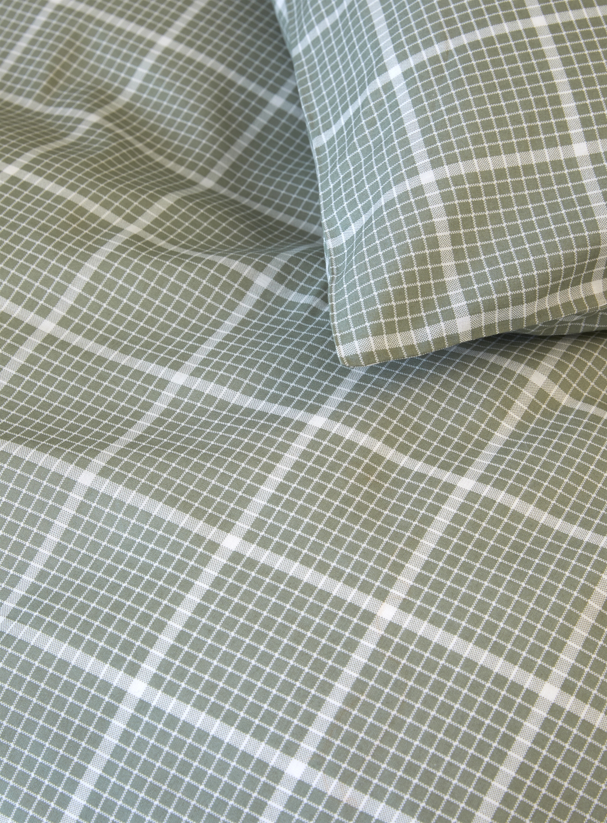 Forside »Sengetøy » Enkelt sengetøy » Enkelt sengetøy 140x200 cm Rutete sengetøy 140x200 cm - 100% ekstra fin bomull - Eddie grønn - Høie Of Scandinavia sengetøy Spar40% Høie Of Scandinavia 769,00459,00NOKSpar 310,- På lager Trustpilot Antall Legg i kurv Se mer fra: Høie Of Scandinavia Artikkelnummer:8318-1 Les vår sengetøysguide Se vårt store utvalg av laken Se vårt store utvalg av dyner 140x200 Har du spørsmål om produktet? Mykt og glansfulltEkstra fin bomullEasy Care-behandlet Dynetrekk: 140x200 cm Putetrekk: 1 stk. à 60x63 cm Materiale: 100% ekstra fin bomull Vev: Ekstra fin 220TC (Trådtetthet = antall tråder per kvadrattomme) Farge: Grønn med ruter Design: Eddie dempet grønn Merke: Høie of Scandinavia Lukking: Dynetrekk med glidelås, putetrekk med overlapp Vask: 60° Tørketrommel: Ja Tåler stryking: Ja Sertifisering: STANDARD 100 by OEKO-TEX® (M2AMUK9D4). Din garanti for at produktet er fritt for helseskadelig kjemi. Sertifisering: EASY CARE-behandlet, som betyr at det ikke krøller etter vask Dette rutete Eddie-sengesettet er laget i 100% ekstra fin bomull. Den ekstra fine bomullen er kjent for sin renhet og store slitestyrke. Sengetøysettet er ikke bare mykt og behagelig, men også utrolig slitesterkt, lett og hurtigttørrende. Dette vakre og elegante sengetøyet er produsert med høy fargeektehet. Sengesettet er OEKO-TEX-sertifisert, noe som betyr at det er testet fri for helseskadelige kjemikalier. Dette er et tegn på ansvarlig produksjon, som ikke bare gagner miljøet, men også vår kropp og hud, da det reduserer risikoen for allergiske reaksjoner. I tillegg er sengetøyet Easy Care-behandlet, for mindre krøll og bedre fasong vask etter vask. Easy Care gjør sengetøyet ekstra komfortabelt og lett å stryke. Kjøp putetrekk til dine ekstra puter her Høie er et skandinavisk merke som står for tradisjon forent med nyskaping. Selskapet har eksistert siden 1850 og har gjennom årene vært med på å forme og utvikle skandinavisk tekstil og design. Sengetøy fra Høie er hverdagsluksus som alle fortjener. Frisk opp sengen og soverommet med et flott og lekkert sett sengetøy som dette. Benytt samtidig muligheten til å sikre deg maksimal sovekomfort ved å tilføye et nytt mykt laken av høy kvalitet. Du finner vårt store utvalg av kvalitetslaken her Tilbake til Enkelt sengetøy 140x200 cm