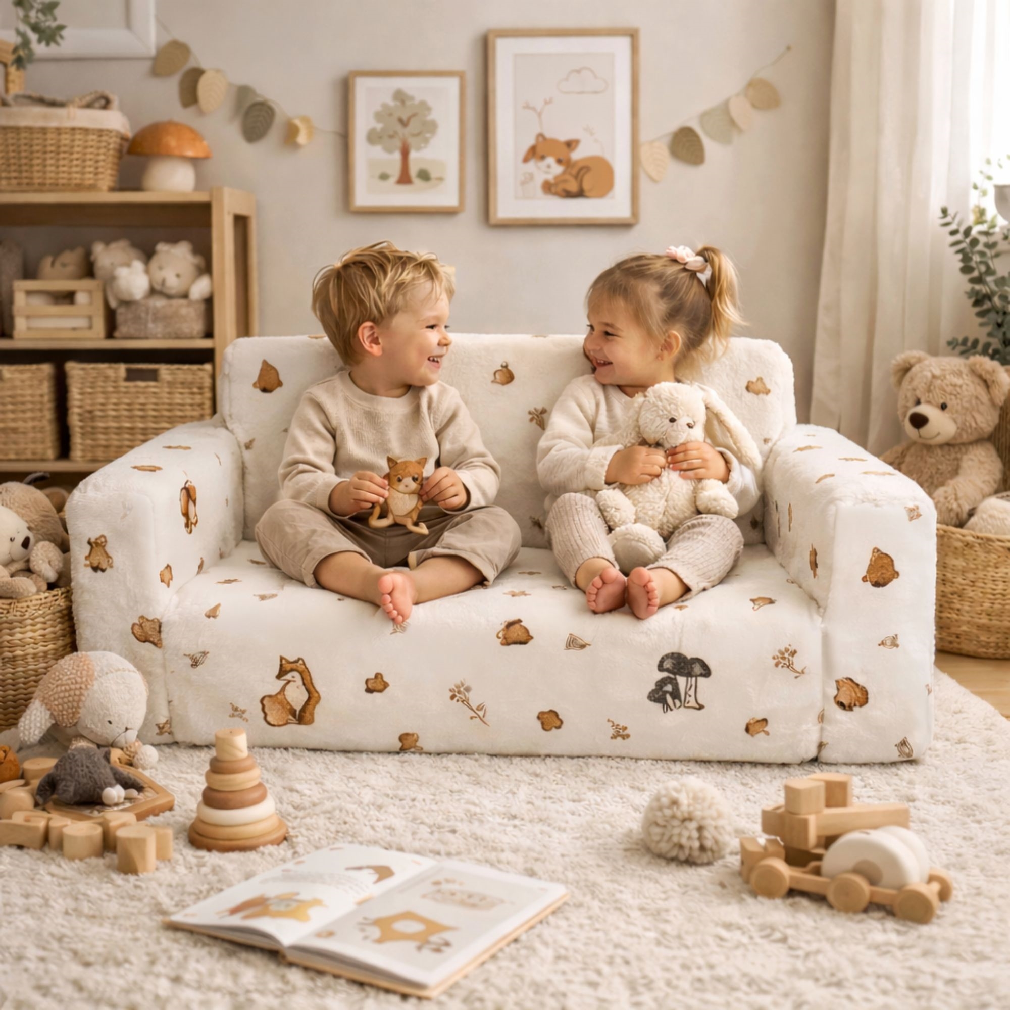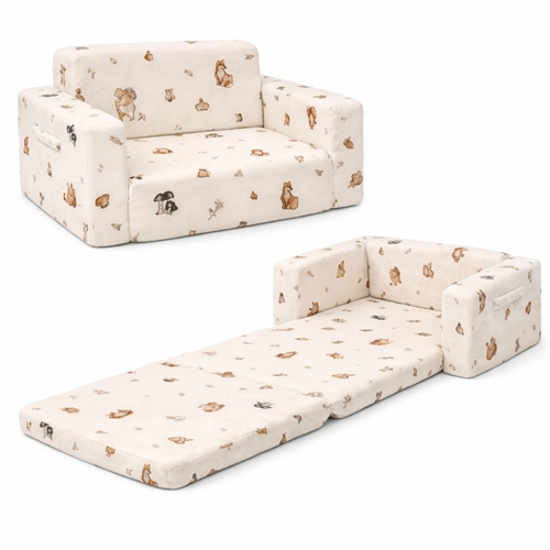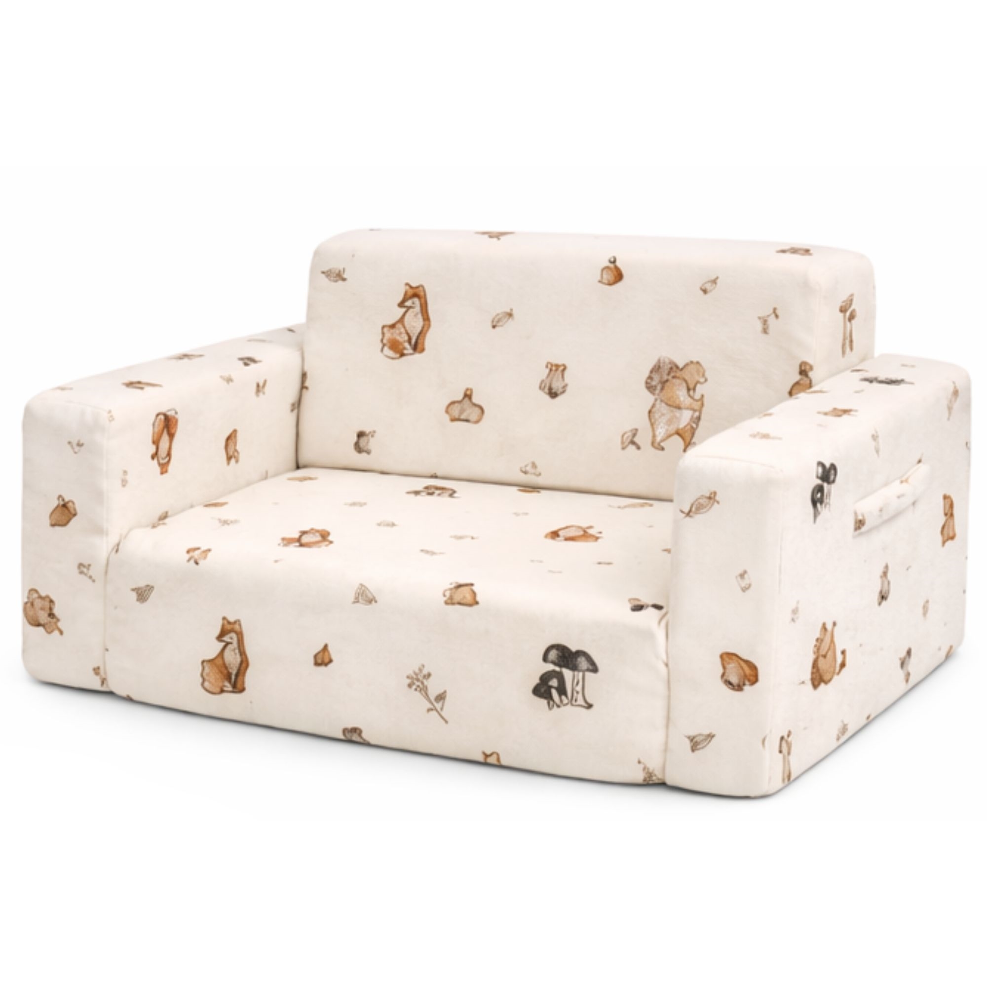 Sammenleggbar barnesofa - myk og koselig fold-ut barnesofa med skogens dyr