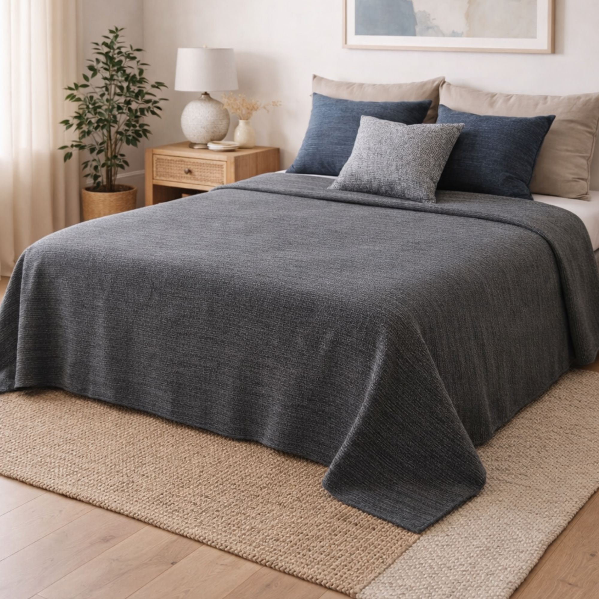 Forside »Innredning » Tekstiler » Sengetepper Sengeteppe 240x260 cm - Grått sengeteppe til dobbeltseng - Nordstrand Home Spar43% Nordstrand Home 699,00399,00NOKSpar 300,- Få på lager Trustpilot Velg størrelse Velg variant Antall Legg i kurv Se mer fra: Nordstrand Home Artikkelnummer:ST5003 Se vårt utvalg av sengegavlputer Se vårt utvalg av morgenkåper til hele familien Se vårt store utvalg av boligtilbehør Har du spørsmål om produktet? Ensfarvet sengeteppe100 % resirkulerte fibreÖKO-TEX®-sertifisert Størrelse: 240x260 cm Type: Passer til dobbeltseng Farge: Grå Design: Nordstrand Home Materiale: 70% bomull, 30% polyester Vask: 40° Sertifisering: Global Recycled Standard (CU 1087862) Sertifisering: STANDARD 100 by OEKO-TEX® Ensfarvet sengeteppe fra Nordstrand Home Trenger soverommet nytt liv? Dette gjøres raskt og enkelt med et lekkert sengeteppe - og kanskje matchende sengegavlputer og pynteputer. Med et sengeteppe fremstår soverommet ryddig og dekorativt på et øyeblikk. Dette sengeteppet er vevd med variasjon i fargene, noe som gir en flott struktur til stoffet. Den samme vevingen brukes også i våre matchende sengegavl- og pynteputer fra samme serie. Mix og match gjerne sengeteppet med forskjellige farger og størrelser på putene dine. Dette skaper både dybde og kontrast i rommet. Sengeteppene fra denne serien er produsert av resirkulerte bomullsfibre og polyesterfibre - et bedre alternativ for deg som ønsker å ta vare på miljøet! Sengeteppet i størrelse 240x260 cm anbefales til dobbeltsenger. Målet sørger for at teppet kan falle fint over sengekantene. Se hele vårt utvalg av sengetepper med matchende puter Med Nordstrand Home er du sikret boligtekstiler i dansk design - i nordisk stil. Nordstrand Home legger stor vekt på følelsen av velvære i et vakkert, men samtidig avslappende miljø. Med Nordstrand Home trenger du ikke gå på akkord, du finner alltid produkter i klassiske og moteriktige farger. Nordstrand Home – Så du føler deg hjemme! Tilbake til Sengetepper