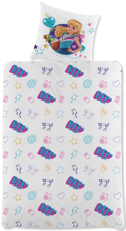 Forside »Sengetøy » Sengetøy til barn » Sengetøy til barn 140x200 cm Sengetøy 140x200 cm - LEGO Friends - Dynetrekk med vendbart design - 100% bomulls sengesett Spar30% Licens 499,00349,00NOKSpar 150,- På lager Trustpilot Antall Legg i kurv Se mer fra: Licens Artikkelnummer:4735-1 Les vår sengetøyguide Se vårt store utvalg av lagner Se vårt store utvalg av dyner 140x200 Har du spørsmål om produktet? God pusteevneMykt og deilig bomullOEKO-TEX® sertifisert Dynetrekk: 140x200 cm Putetrekk: 60x63 cm Materiale: 100% myk bomull Farge: Flerfarget Motiv: Vendbart design - forside med LEGO Friends, bakside med ikoner Lukking: Dyne med knapper og putetrekk med overlapp Vask: 60° Tørketrommel: Ja Tåler stryking: Ja Sertifisering: STANDARD 100 by OEKO-TEX® (11-31077). Din garanti for at produktet er fritt for helseskadelig kjemi. Sengetøy med et kult motiv av LEGO Friends-dukker. Det myke sengesettet produsert i 100% bomull er både pustende og absorberende, og gir god sovekomfort. Et slitesterkt bomulls barnesengesett som gjør barnerommet litt mer spennende. Populært sengesett for alle LEGO Friends-fans. Perfekt sengetøy hvis man elsker å bygge og leke med de søte karakterene fra LEGO Friends-serien. Sengsettet er vendbart, det vil si at sengetøyet har forskjellige motiver på for- og bakside. Den ene siden har motiver av alle jentene fra LEGO Friends-serien, mens den andre siden er designet med fine klosser. Sengesettet er produsert i 100% myk bomull som gjør settet slitesterkt og med høy pusteevne. Den rene bomullskvaliteten gir et deilig og mykt sengesett som bidrar til god sovekomfort for barnet. Bomullssengetøy kan vaskes på 60° i vaskemaskin, noe som også bidrar til å opprettholde et høyt hygienisk nivå. Sengetøyet er i tillegg fremstilt med OEKO-TEX-sertifisering, som er din garanti for at settet er fritt for skadelig kjemi. Gå på jakt etter favorittene og mye mer i vårt store utvalg av tilbehør til barneuniverset For barnet bør sengen være et trygt sted, og alle elementene skal sammen skape myke og fine omgivelser for barnet å finne ro i. Bruk derfor gjerne barnets interesser for å skape et trygt soverom for barnet. Hos oss kan du finne et stort utvalg av tilbehør til sengen og barnerommet, alt fra lagner til dyner, puter, sengetøy og mye mer, og masse produkter med alle barnas favoritter. Alt sammen elementer som kan bidra til å skape det rette sovemiljøet og rommet for ditt barn. Her kan du finne deilige og myke kvalitetslagner Tilbake til Sengetøy til barn 140x200 cm