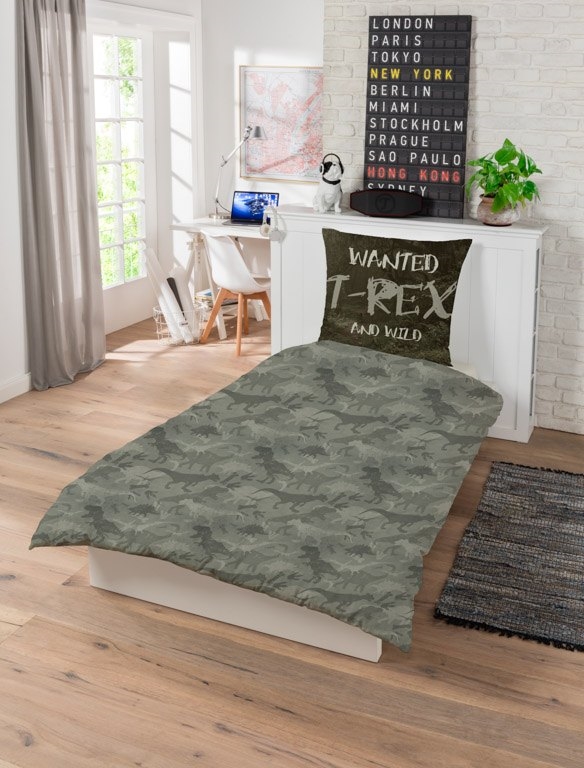 Forside »Sengetøy » Sengetøy til barn » Sengetøy til barn 140x200 cm Sengetøy 140x200 cm - T-rex dinosaur sengetøy - Vendbart design - Sengetøy barn i 100% bomull Spar30% Licens 499,00349,00NOKSpar 150,- På lager Trustpilot Antall Legg i kurv Se mer fra: Licens Artikkelnummer:9157-1 Les vår sengetøyguide Se vårt store utvalg av lagner Se vårt store utvalg av dyner 140x200 Har du spørsmål om produktet? OEKO-TEX® sertifisertMykt og deiligSmart design Dynebetræk: 140x200 cm Putetrekk: 60x63 cm Materiale: 100% myk bomull Farge: Mørke nyanser Motiv: Vendbart design - forside med t-rex, bakside med dinosaur skyggeprint Lukning: Dyne med knapper og putetrekk med overlapp Vask: 60° Tørketromling: Ja Tåler stryking: Ja Sertifisering: STANDARD 100 by OEKO-TEX®(20160K0840). Din garanti for at produktet er fritt for helseskadelig kjemi. Sengetøy med et kult motiv av en farlig T-rex, og en fin grønn bakside med skyggeprint. Det myke sengesettet produsert i 100% bomull er både pustende og absorberende, og gir god sovekomfort. Et slitesterkt bomulls barnesengesett som gjør barnerommet litt mer spennende. Flott og fryktinngytende sengesett, hvor den ene siden har motiv av en dinosaur i skogens mørke. Vender du sengesettet om, får du en flott bakside med et all-over print av små forskjellige dinosaurer. Ethvert dinosaurglad barn vil elske dette sengesettet. Sengesettet er produsert i 100% myk bomull som gjør settet slitesterkt og med høy pusteevne. Den rene bomullskvaliteten gir et deilig og mykt sengesett som bidrar til å fremme sovekomfort for barnet. Bomullssengetøy kan vaskes ved 60° i vaskemaskin, noe som også bidrar til å opprettholde et høyt hygienisk nivå. Sengetøyet er i tillegg fremstilt med OEKO-TEX sertifisering, som er din garanti for at settet er fritt for skadelig kjemi. Gå på utkikk etter favorittene og mye mer i vårt store utvalg av tilbehør til barneuniverset For barnet bør sengen være et trygt sted og alle elementene skal sammen skape myke og deilige omgivelser for barnet å finne ro i. Bruk derfor gjerne barnets interesser for å skape et trygt soverom for barnet. Hos oss kan du finne et stort utvalg av tilbehør til sengen og barnerommet, fra laken til dyner, puter, sengetøy og mye mer, og masse produkter med alle barnas favoritter på. Alt sammen elementer som kan være med på å skape det rette sovemiljøet og rommet for ditt barn. Her kan du finne deilige og myke kvalitetslaken Tilbake til Sengetøy til barn 140x200 cm