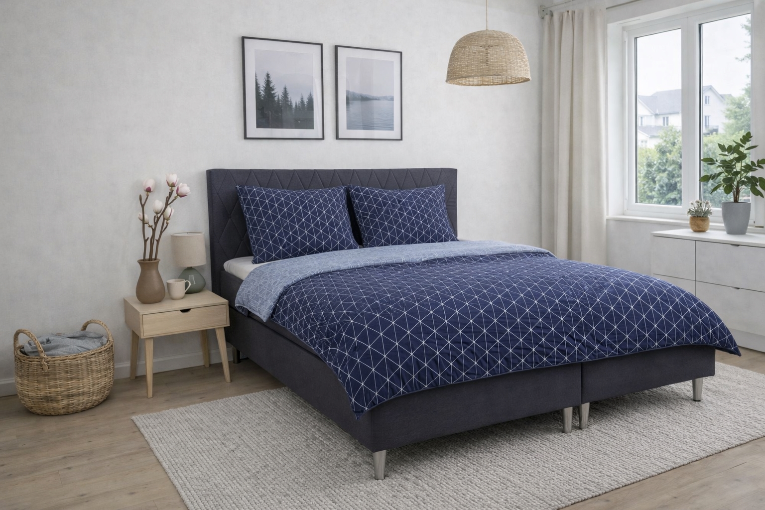 Gi soverommet et dekorativt og stilfullt uttrykk med dette sengesettet i 100% bomull med vendbart harlequin-design. Det vendbare designet gir deg to forskjellige looks i ett sengesett. Det gjør sengetøyet enkelt å kombinere med ulike farger, puter og pledd og gir større fleksibilitet i innredningen.