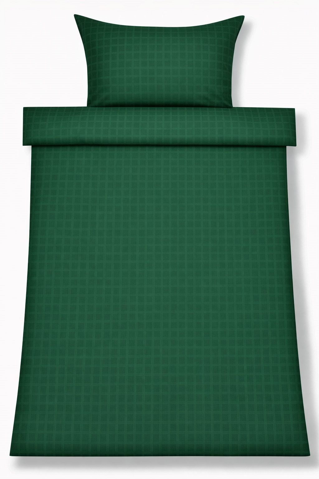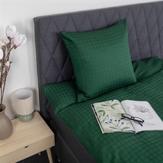 Det jacquardvevde rutemønsteret er vevd direkte inn i stoffet og skaper struktur og dybde uten bruk av trykk. Denne vevemetoden sikrer at mønsteret beholder sitt uttrykk vask etter vask og gir sengetøyet et eksklusivt og gjennomført utseende. Den grønne fargen understreker det rolige designet og passer lett inn i både moderne og klassiske soverom.