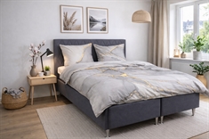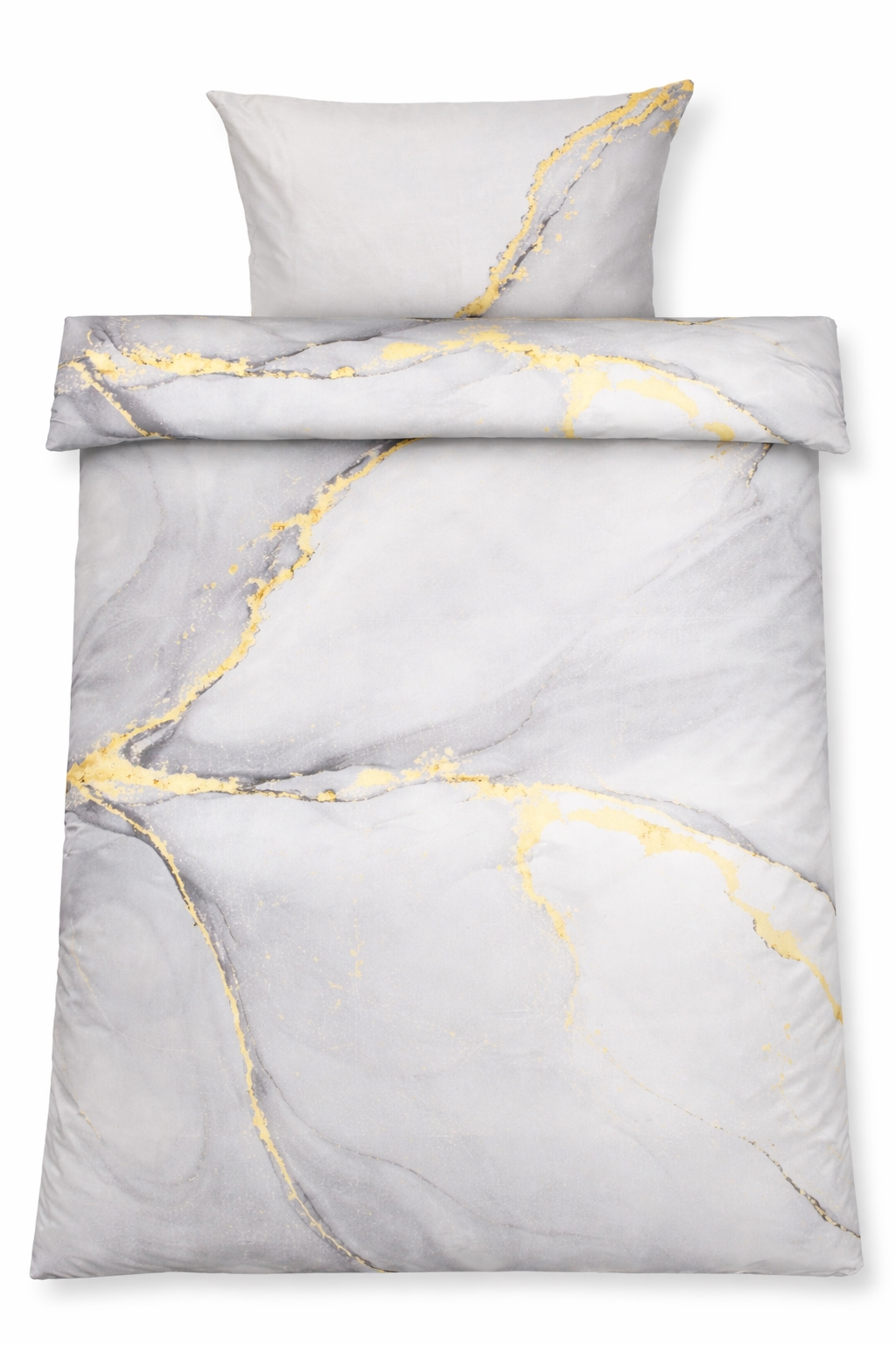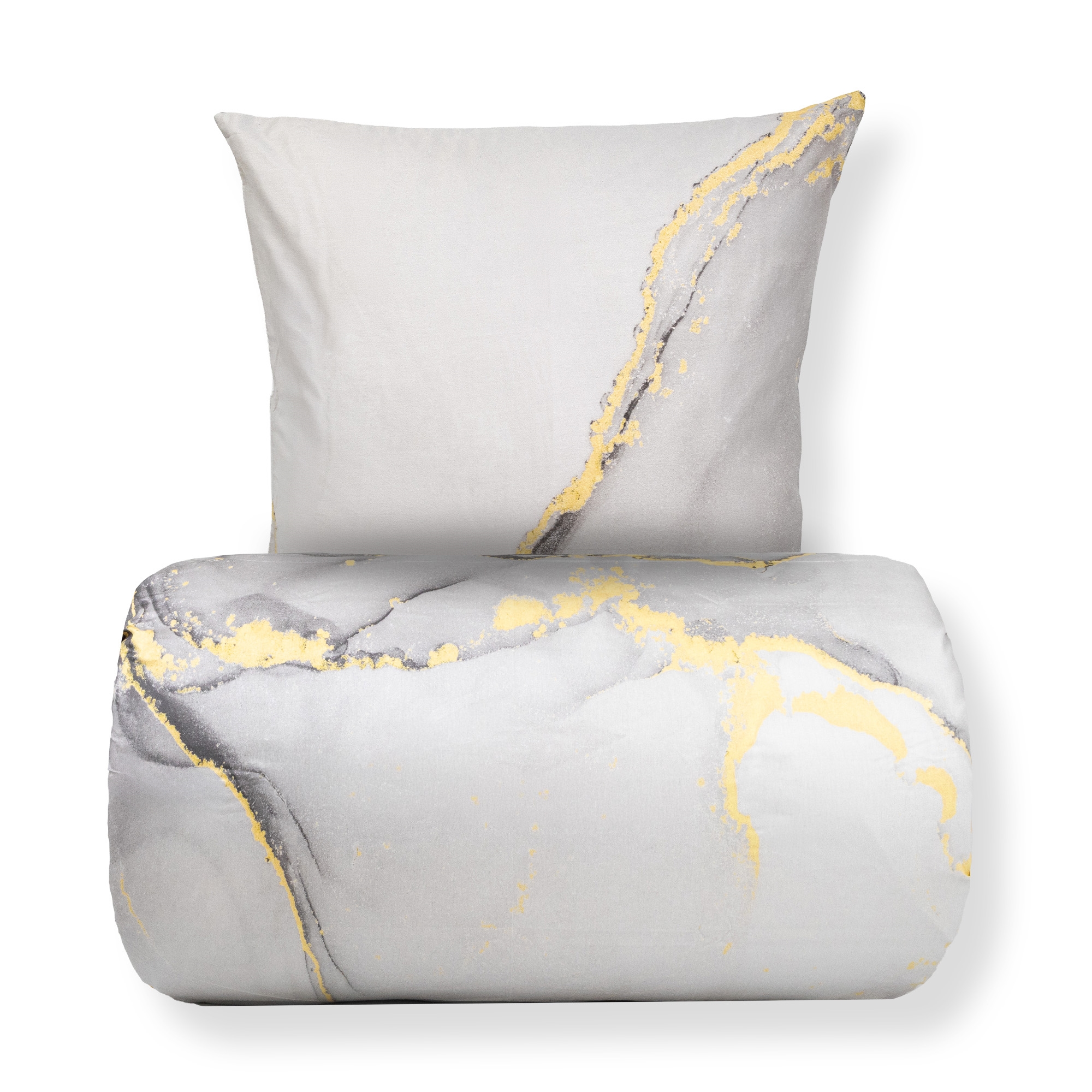 Gjør soverommet elegant og moderne med dette bomullssatin sengetøyet i grått marmorlook. Det detaljerte marmor digitaltrykket skaper en eksklusiv 3D-lignende dybde i designet, hvor de fine gyldne linjene og myke fargeovergangene gir et sofistikert og kunstnerisk uttrykk.