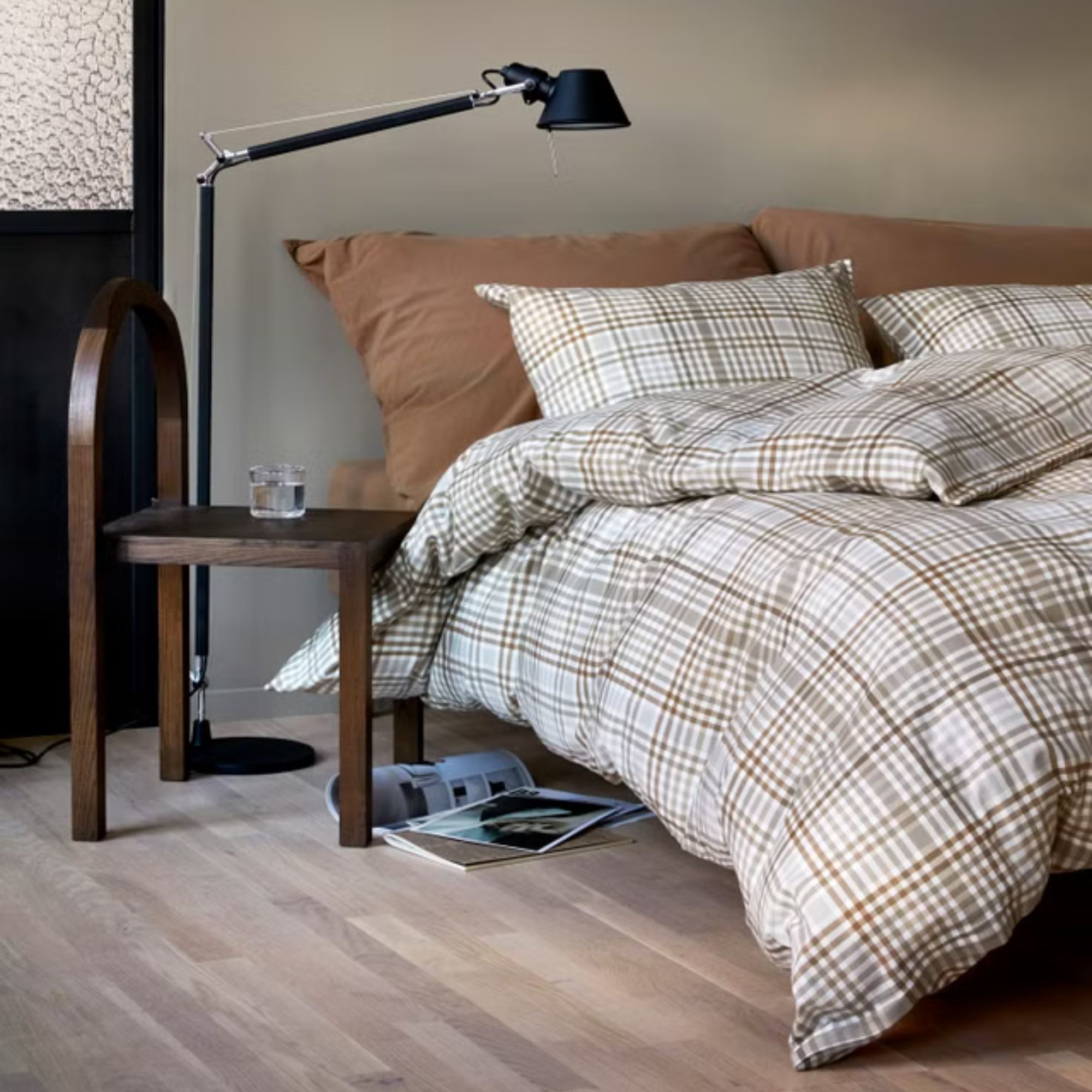Forside »Sengetøy » Enkelt sengetøy » Enkelt sengetøy 140x200 cm Sengetøy 140x200 cm - 100% bomullsflanell - Høie of Scandinavia - David Dempet Brun 100% bomullsflanell Spar25% Høie Of Scandinavia 799,00599,00NOKSpar 200,- På lager Trustpilot Velg størrelse Velg variant Antall Legg i kurv Se mer fra: Høie Of Scandinavia Artikkelnummer:7706-1 Les vår sengetøyguide Se vårt store utvalg av laken Se vårt store utvalg av dyner 140x200 Har du spørsmål om produktet? Varmt og lunt sengesett, som føles behagelig mot hudenPustende og mykt materiale med høy komfortUtrolig myk og lodden overflate Dynetrekk: 140x200 cm Putetrekk: 1 stk. á 60x63 cm Materiale: 100% bomullsflanell Vev: Ekstra fin 220TC (Trådantall = antall tråder per kvadrattomme) Farge: Brun Design: David Dempet Brun Merke: Høie of Scandinavia Lukking: Dynetrekk med glidelås, putetrekk med overlapp Vask: 60° Tørketrommel: Ja Tåler stryking: Ja Sertifisering: EASY CARE-behandlet, som betyr at det ikke krøller etter vask. Sertifisering: MADE IN GREEN by OEKO-TEX® (M27M47FP6). Din garanti for at produktet er fritt for helseskadelig kjemi. Rutet sengetøy i bomullsflanell fra Høie Gjør sengen ekstra innbydende med dette myke og varme sengesettet i 100% bomullsflanell. Sengetøy av flanell er det opplagte valget for deg som fryser om natten og ønsker ekstra komfort og varme - spesielt på kjølige netter eller i vinterhalvåret. Bomullsflanell fremstilles ved å børste og rufse opp bomullsfibrene, noe som gir en utrolig myk, lodden og lun overflate. Den rufsete strukturen skaper små luftlommer i stoffet, som effektivt hjelper med å holde på varmen, samtidig som bomullen bevarer sin naturlige pusteevne. Det gir en behagelig og balansert nattesøvn uten å føles tung eller fuktig. Dette flanell-sengetøyet har en trådtetthet på 220TC, som sikrer en god balanse mellom slitestyrke, komfort og mykhet. Materialet egner seg for deg som ofte fryser om natten, eller som ønsker et ekstra lunt sengetøy i de kalde månedene. Sengetøyet er MADE IN GREEN by OEKO-TEX® sertifisert, som er din garanti for at produktet er fri for helseskadelig kjemi. Det er også Easy Care-behandlet, som sikrer mindre krøll og bedre fasong etter vask. Easy Care gjør ditt sengetøy ekstra mykt og lett å stryke. Bomullssatin-sengetøy er derfor et opplagt valg for deg som ønsker ekstra komfort og en hotell-lignende fornemmelse hjemme, men fortsatt vil ha et naturmateriale som er lett å stelle og behagelig å sove i. Se alt vårt sengetøy av flanell her Høie Of Scandinavia Høie of Scandinavia er et velkjent skandinavisk tekstilmerke som siden 1850 har hatt en lang historie, særlig innen sengetøy, dyner og puter. Høie er kjent for høy kvalitet, tidløst design og komfort - det gjenspeiles i deres nordiske stil og funksjonalitet. Høie kombinerer tradisjonelt håndverk med moderne produksjon og materialer for å skape varer som er både behagelige å sove i og holdbare i hverdagen. Se hele utvalget av Høie her Tilbake til Enkelt sengetøy 140x200 cm