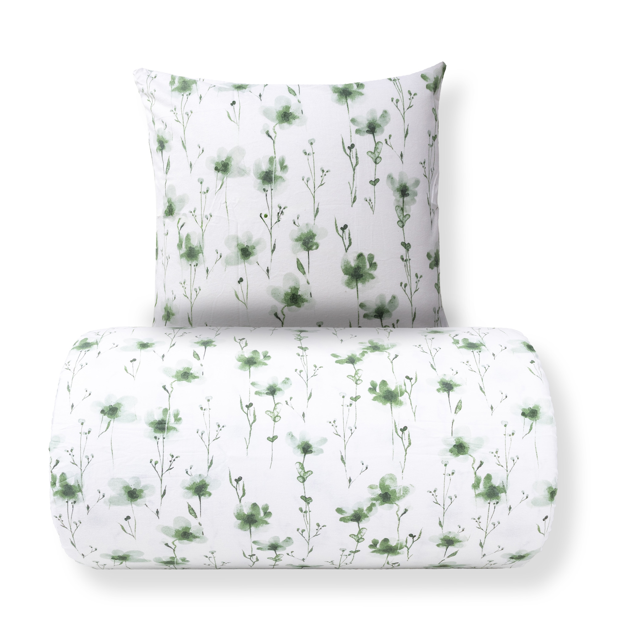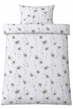 Skap en hyggelig og innbydende atmosfære på soverommet med dette blomstrede sengetøyet i bomullssengetøy av flanell i hvitt med grønne detaljer. Den myke bomullssengetøy av flanell gir en lun og behagelig komfort - perfekt for kjølige netter.