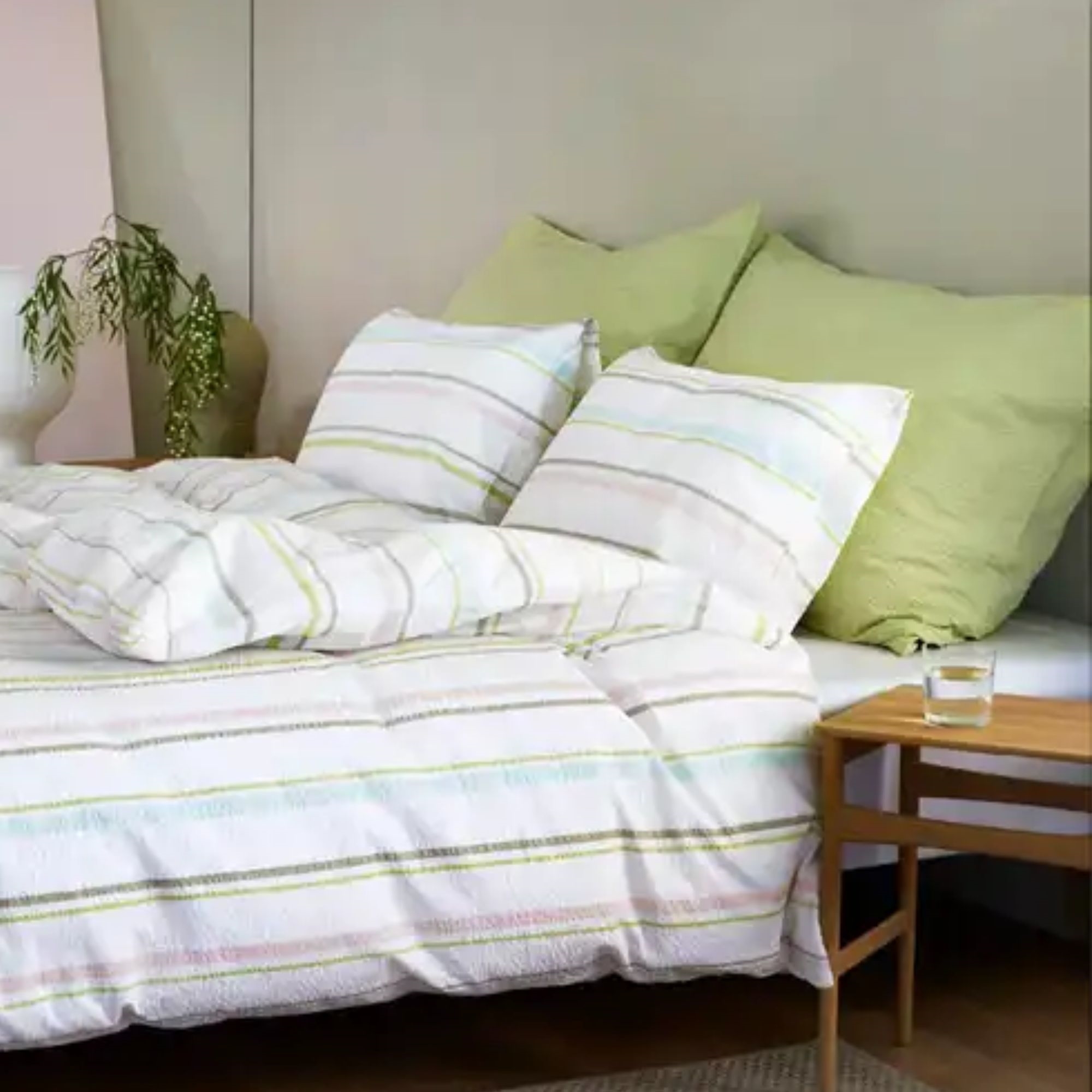 Nyt en lett, luftig og behagelig nattesøvn med kreppsengetøy i 100% bomull. Denne særlige vevingen - også kjent som bomullskrepp eller kreppsengetøy - skaper den karakteristiske bølgede og lett rynkede strukturen, som gir sengetøyet sitt luftige uttrykk og kjølige komfort.