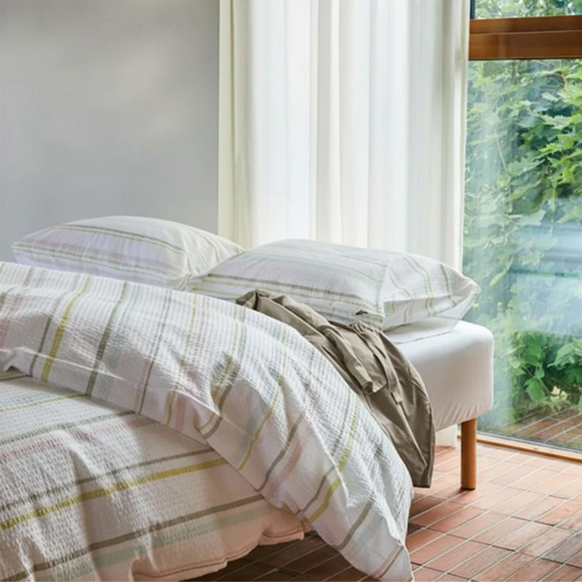 Kreppvevingen danner små luftlommer i stoffet, noe som gjør sengetøyet ekstra pustende og lett å sove i. Overflaten oppleves kjøligere mot huden enn tradisjonelt glatt sengetøy og er derfor spesielt velegnet til varme nætter eller for deg som ofte blir varm når du sover. Samtidig bevarer bomullen sin naturlige mykhet og evne til å absorbere fukt, slik at du får en behagelig og tørr sovekomfort. Sengetøyet har en trådtetthet på 200TC, som sikrer en god balanse mellom holdbarhet, komfort og mykhet. Den vaffelstrukturen gjør at sengetøyet ikke trenger å bli strøket for å se pent ut - det karakteristiske uttrykket er en naturlig del av designet.