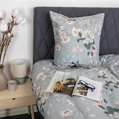 Både dynetrekk og putetrekk lukkes med innvendig glidelås, som sikrer at dynen og puten blir på plass, og gjør det enkelt å skifte sengetøy. Det støvete grønne blomsterdesignet skaper et rolig og dekorativt uttrykk som passer inn i både moderne og klassiske soverom.