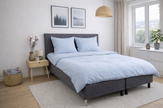 Skap et rolig og stilrent uttrykk på soverommet med dette ensfargede mikrofiber-sengetøyet i dempet pastellblå farge. Det enkle designet gir et moderne og harmonisk uttrykk, mens den glatte og lett glansfulle overflaten tilfører sengen et elegant finish.