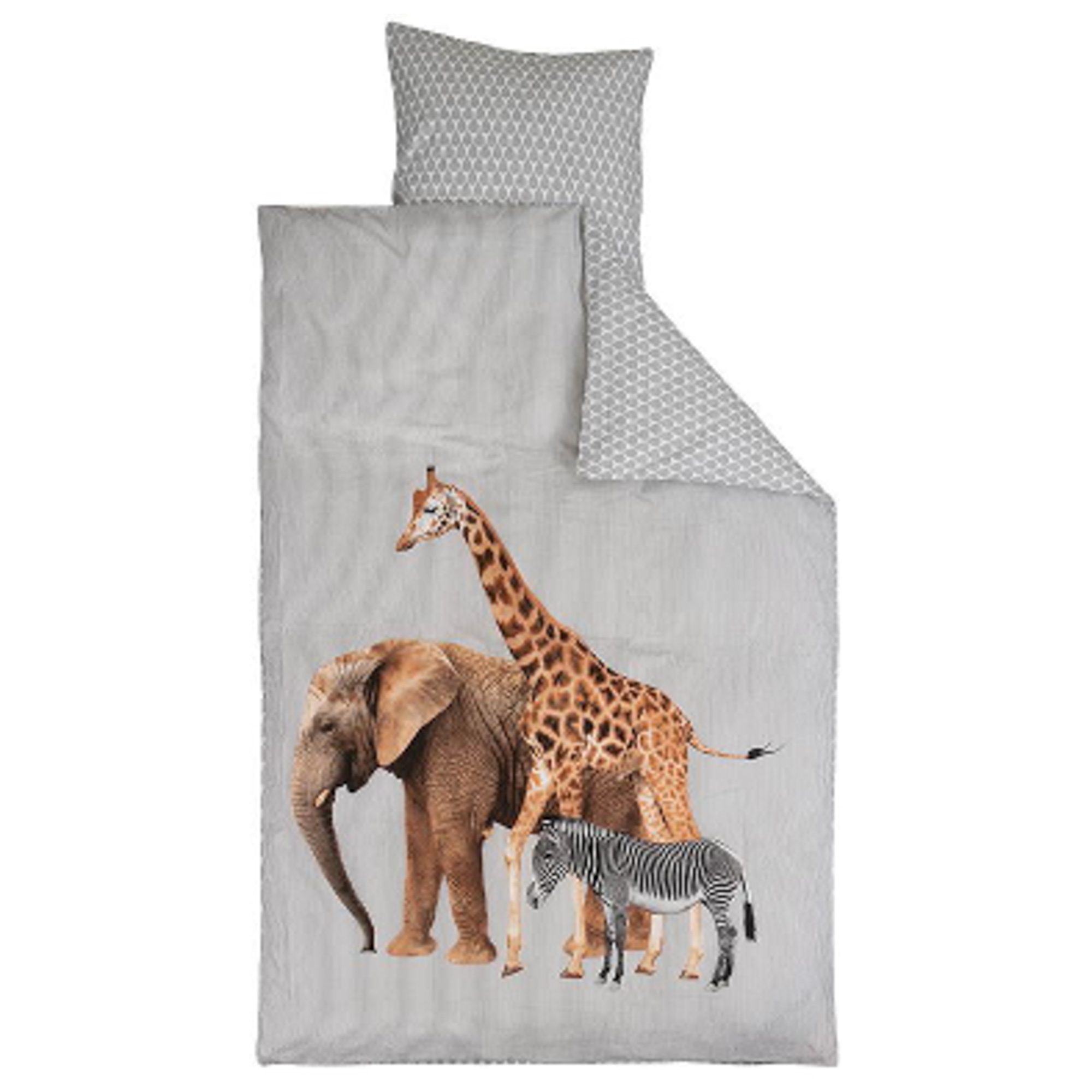 Forside »Sengetøy » Sengetøy til barn » Sengetøy til barn 140x200 cm Sengetøy 140x200 cm - Giraff, elefant og sebra - Vendbart sengesett - 100% Bomull - Sengetøy barn Spar56% Borg LivingBy Night 899,00399,00NOKSpar 500,- På lager Trustpilot Antall Legg i kurv Se mer fra: Borg Living Artikkelnummer:9429-1 Les vår sengetøyguide Se vårt store utvalg av lagner Se vårt store utvalg av dyner 140x200 Har du spørsmål om produktet? OEKO-TEX® sertifisertMykt og deiligPustende og slitesterkt Dynetrekk: 140x200 cm Putetrekk: 60x63 cm Materiale: 100% myk bomull Farge: Grå Motiv: Vendbart design - forside med Zoo-tema med elefant, giraff og sebra, bakside med mønster Lukking: Dyne- og putetrekk lukkes med glidelås Vask: 60° Tørketrommel: Ja Tåler stryking: Ja Sertifisering: STANDARD 100 by OEKO-TEX® (15.HCN.62920). Din garanti for at produktet er fritt for helseskadelig kjemi. Det fine sengesettet med savannedyrene på en bakgrunn av rolige farger og fine mønstre, er et flott og koselig tilskudd til barnerommet blant alle dyrevenner. Det myke sengesettet produsert i 100% bomull er både pustende og absorberende, og gir god sovekomfort. Et slitesterkt bomulls barnesengesett som gjør barnerommet litt mer spennende Super herlig sengesett med et flott trykk av en elefant, en giraff og en sebra. Perfekt for alle små og store dyreelskere. Baksiden er assortert - grå med stjerner eller grå med dråper. Sengesettet er produsert i 100% myk bomull som gjør settet slitesterkt og med høy pusteevne. Den rene bomullskvaliteten gir et lekkert og mykt sengesett som bidrar til god sovekomfort for barnet. Bomullssengetøy kan vaskes på 60° i vaskemaskin, noe som også bidrar til å opprettholde et høyt hygienisk nivå. Sengetøyet er i tillegg fremstilt med OEKO-TEX sertifisering, som er din garanti for at settet er fritt for skadelig kjemi. Gå på jakt etter favorittene og mye mer i vårt store utvalg av tilbehør til barneuniverset For barnet bør sengen være et trygt sted og alle elementene skal sammen skape myke og gode omgivelser for barnet å finne ro i. Bruk derfor gjerne barnets interesser for å skape et trygt soverom for barnet. Hos oss kan du finne et stort utvalg av tilbehør til sengen og barnerommet, alt fra lagner til dyner, puter, sengetøy og mye mer, og mange produkter med alle barnas favoritter på. Alt sammen elementer som kan bidra til å skape det rette sovemiljøet og rommet for ditt barn. Her kan du finne deilige og myke kvalitetslagner By Night kjennetegnes av dansk design - de gir deg behagelige sovekomponenter til ditt nattemiljø i aller høyeste kvalitet. By Night produserer sengetøy og lagner til hele familien og legger stor vekt på tidens trender, slik at produksjonen alltid innebærer moteriktige farger og design. Tilbake til Sengetøy til barn 140x200 cm