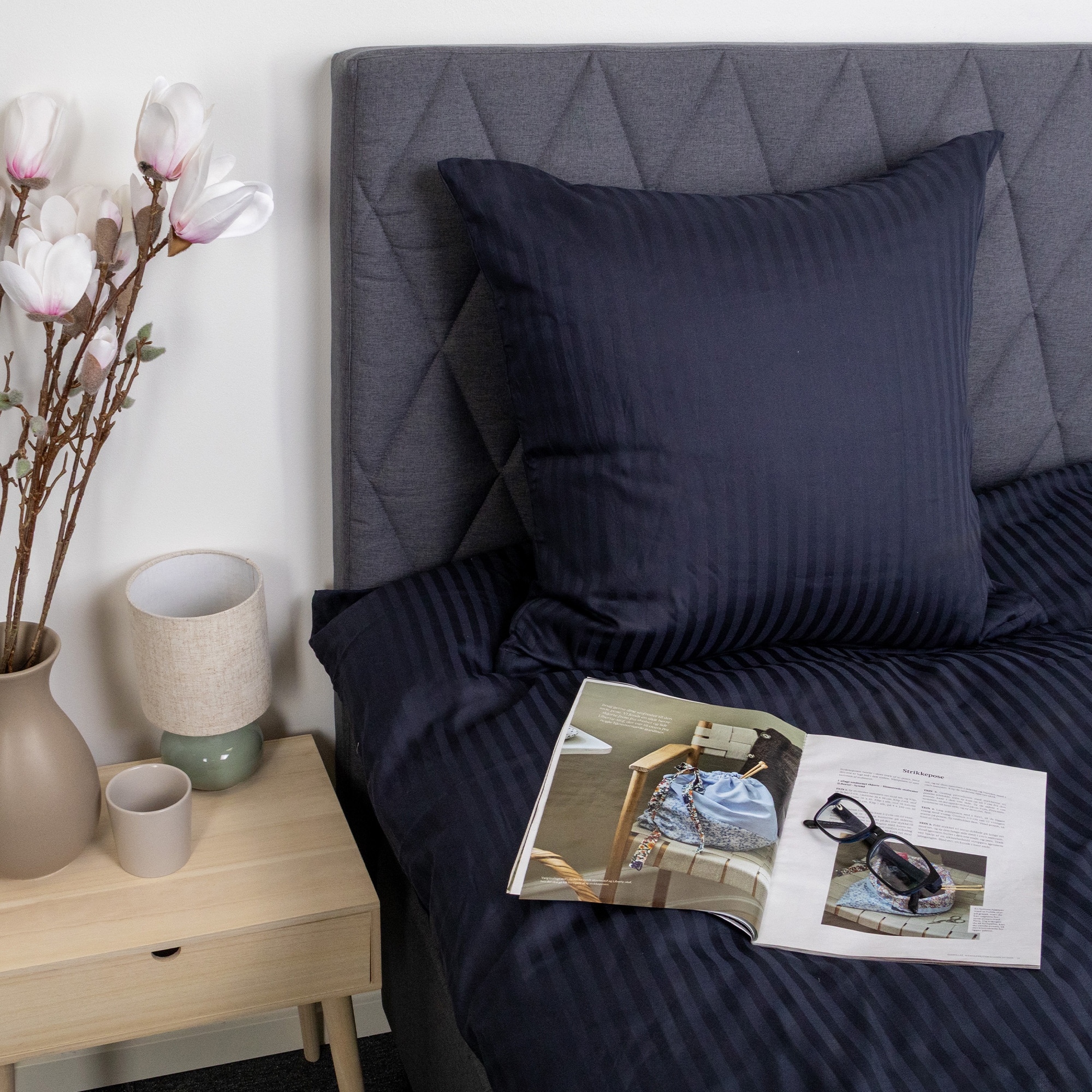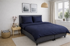 Skap et elegant og eksklusivt uttrykk på soverommet med dette mørkeblå stripete sengetøyet i 100% bomullssatin. Sengetøyet kombinerer klassisk design med høy komfort og er laget for deg som ønsker både luksus og funksjonalitet i hverdagen.