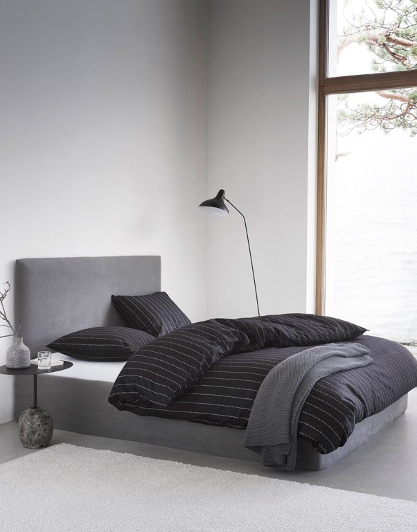 Forside »Sengetøy » Enkelt sengetøy » Ekstra langt sengetøy 140x220 cm Sengetøy 140x220 cm - Jora Black - Sengetøy i 100 % bomullssateng - Marc O'Polo sengesett Spar25% Marc O'Polo 1.599,001.199,00NOKSpar 400,- På lager Trustpilot Antall Legg i kurv Se mer fra: Marc O'Polo Artikkelnummer:7302-2 Les vår sengetøyguide Se vårt store utvalg av laken Se vårt store utvalg av dyner 140x220 Har du spørsmål om produktet? Sengetøy - 140x220 cm100 % bomullssatengMarc O'Polo - Jora Black Dynetrekk: 140x220 cm Putetrekk: 1 stk. á 60x63 cm Materiale: 100 % bomullssateng Veving: Ekstra fin 300TC (trådantall = antall tråder per kvadrattomme) Farge: Svart Design: Stripet med tekst Merke: Marc O'Polo Lukking: Dyne lukkes med innvendige knapper Vask: 60° Tørketrommel: Ja Kan strykes: Ja Sertifisering: STANDARD 100 by OEKO-TEX® (0906030) Behagelig sengetøy fra populære Marc O'Polo, så du er garantert god kvalitet. Sengesettet er vevd av de fineste tette bomullstrådene, noe som gir et eksklusivt og mykt sengesett i bomullssateng med høy slitestyrke. Sengetøy fra Marc O'Polo er fargeekte, noe som betyr at det holder fargen etter gjentatte vask. Kjøp lette putetrekk til dine ekstra puter her Marc O'Polo er sannsynligvis mest kjent for sine klassiske klær for både menn og kvinner. Marc O'Polo har alltid stått for kvalitetsprodukter, noe som også gjelder boligtekstiler – Her får du sengetøy i et elegant og stilrent design. Frisk opp sengen og soverommet med et flott og behagelig sett sengetøy som dette. Benytt samtidig muligheten til å sikre deg maksimal sovekomfort ved å legge til et nytt, mykt laken av høy kvalitet. Du finner vårt store utvalg av laken her Tilbake til Ekstra langt sengetøy 140x220 cm