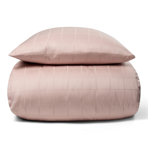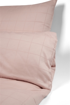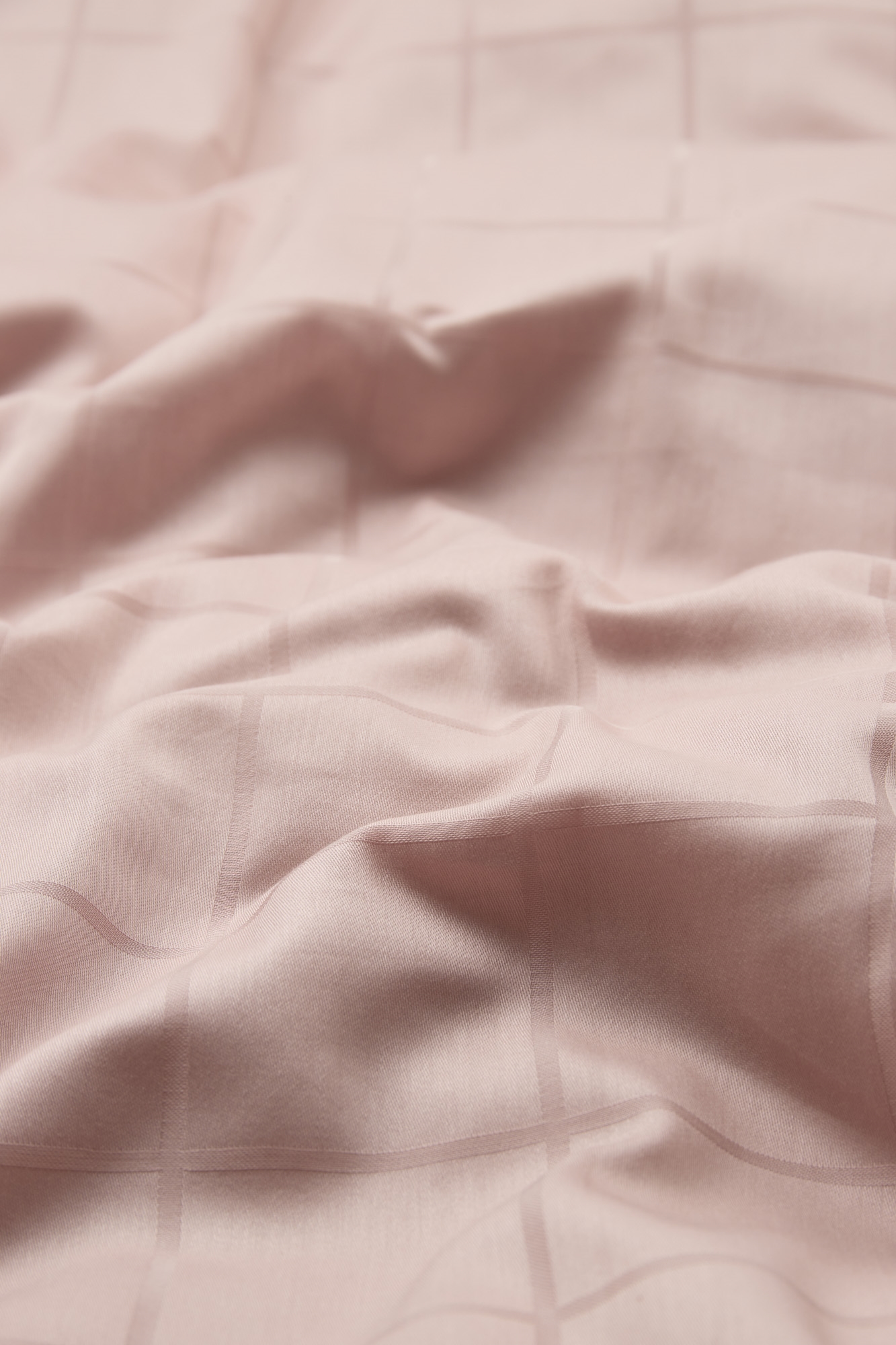Jacquardvevingen kan sees i det rutete mønsteret på sengetøyet, som er vevd direkte inn i stoffet. Når jacquardvevingen kombineres med bomullssatengens naturlige glans og mykhet, får du et unikt sengesett av høy kvalitet med et elegant uttrykk. I tillegg er sengetøyet 100 % gjennomfarget, noe som betyr at fargen er bundet i bomullsfibrene under produksjonen. Dette gir utrolig høy farge- og vaskeekthet.