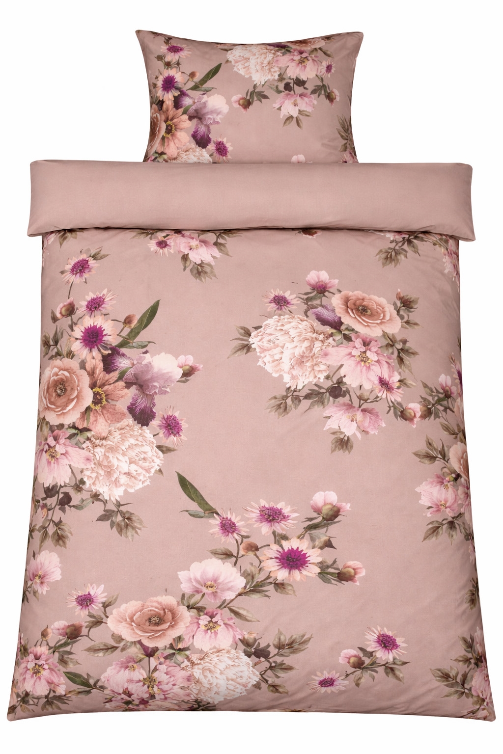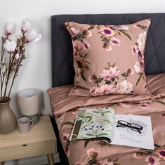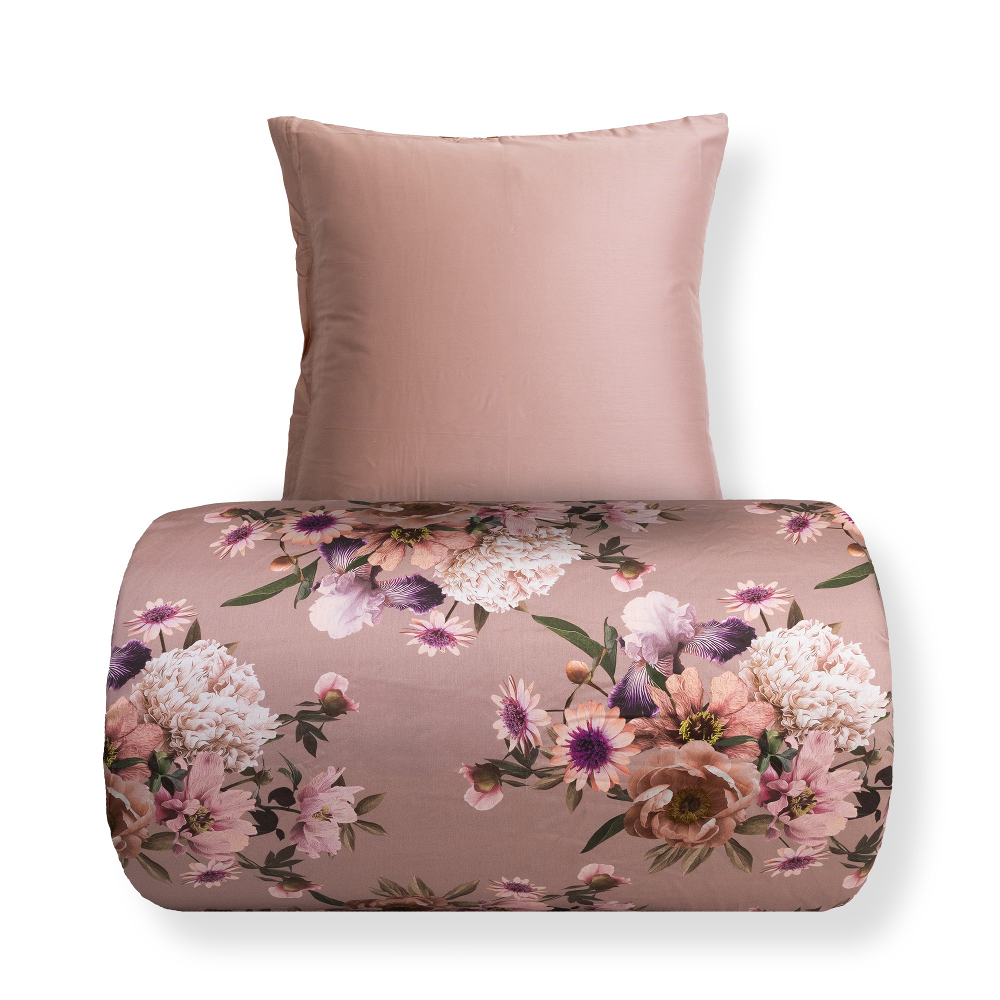 Skap et elegant og personlig uttrykk på soverommet med dette vendbare sengesettet i 100% bomullssatin. Sengetøyet kombinerer et vakkert blomsterprint i nude og rosa nyanser på den ene siden med en rolig, ensfarget bakside, slik at du enkelt kan endre uttrykk etter stemning og innredning.