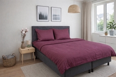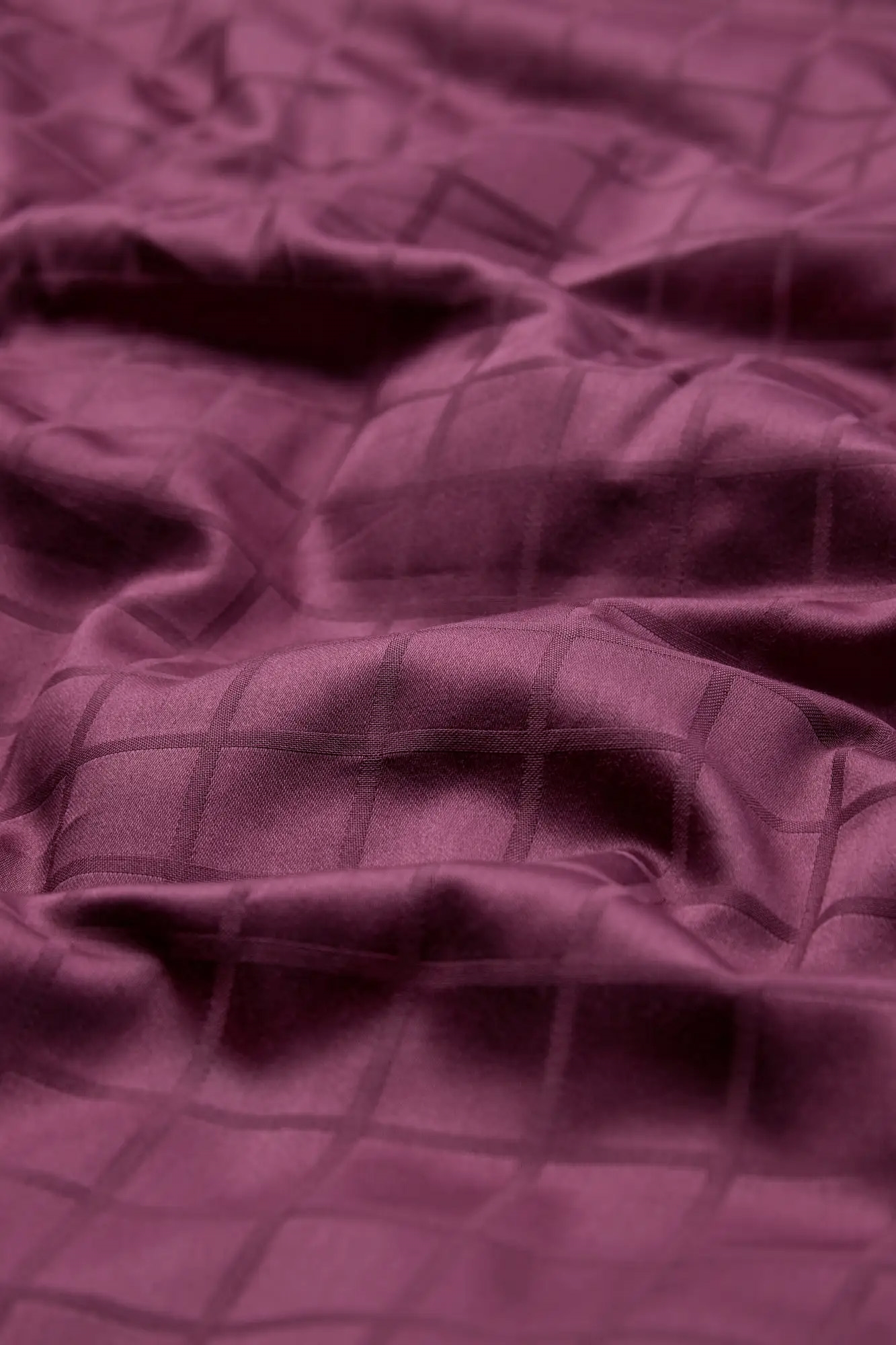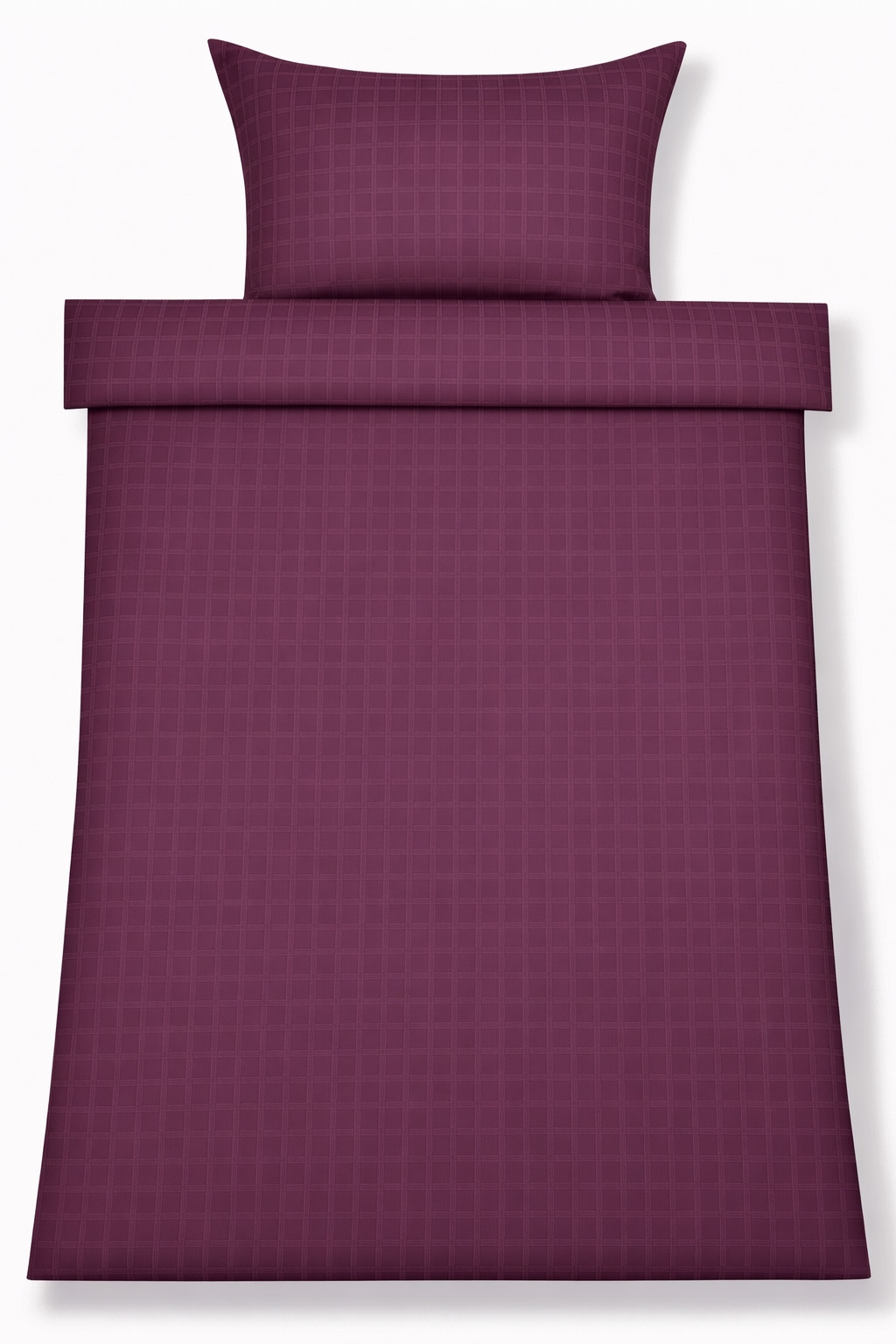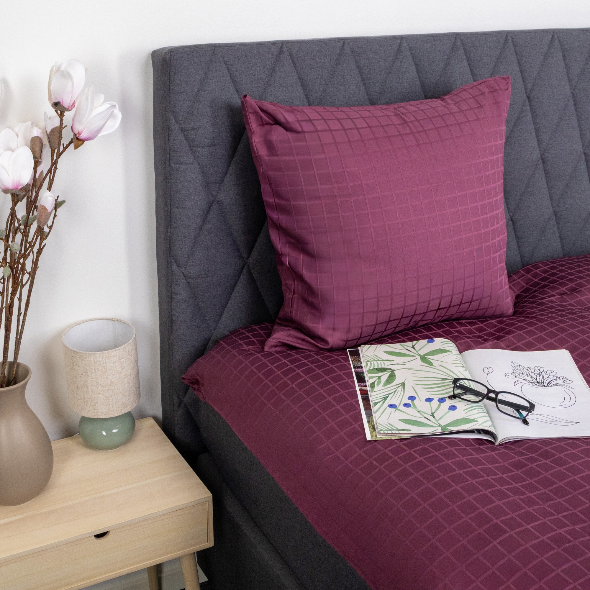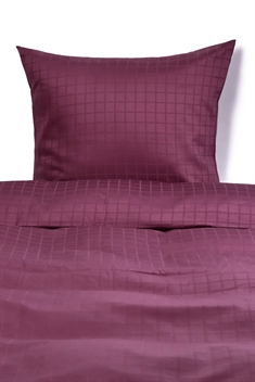 Det jacquardvevde rutemønsteret er vevd direkte inn i stoffet og skaper struktur og dybde uten bruk av trykk. Denne vevemetoden sikrer at mønsteret bevarer sitt uttrykk vask etter vask og gir sengetøyet et eksklusivt og gjennomført utseende. Den mørke plommefargen understreker det rolige designet og passer lett inn i både moderne og klassiske soverom.