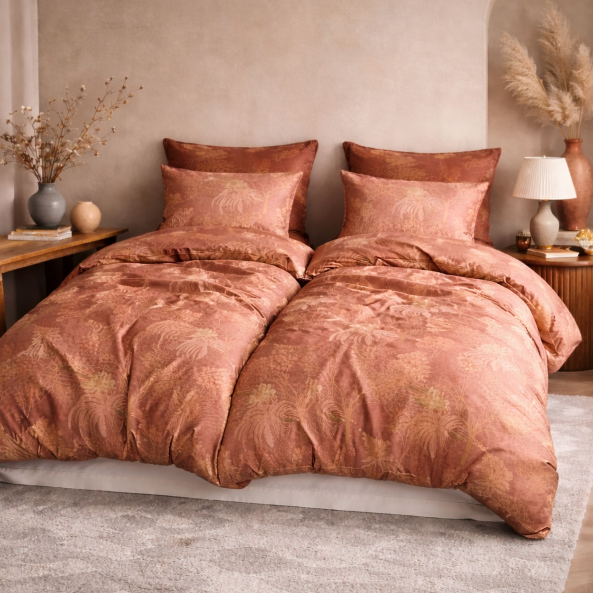 Forside »Sengetøy » Enkelt sengetøy » Ekstra langt sengetøy 140x220 cm Sengetøy 140x220 cm - 100% bomullssatin - Høie Of Scandinavia - Margrethe Terracotta Spar15% Høie Of Scandinavia 1.299,001.099,00NOKSpar 200,- På lager Trustpilot Velg størrelse Velg variant Antall Legg i kurv Se mer fra: Høie Of Scandinavia Artikkelnummer:6906-2 Les vår sengetøyguide Se vårt store utvalg av laken Se vårt store utvalg av dyner 140x200 Har du spørsmål om produktet? Myk kvalitet som føles behagelig mot hudenSatinveving som gir en glatt og eksklusiv overflateLett glans i stoffet gir et eksklusivt uttrykk Dynetrekk: 140x220 cm Putetrekk: 1 stk. á 60x63 cm Materiale: 100% bomullssatin Vevning: Ekstra fin 220TC satinvevd (Thread count = antall tråder per kvadrattomme) Farge: Rødlig Design: Margrethe Terracotta Merke: Høie of Scandinavia Lukning: Dynetrekk med glidelås, putetrekk med overlapp Vask: 60° Tørketromling: Ja Tåler stryking: Ja Sertifisering: EASY CARE-behandlet, som betyr at det ikke krøller etter vask. Sertifisering: STANDARD 100 by OEKO-TEX® (M24LHANWS). Din garanti for at produktet er fri for helseskadelig kjemi. Mønstret sengetøy i bomullssatin fra Høie Sengetøyet er laget av 100% bomullssatin med en ekstra fin 220TC satinveving, som gir en utrolig myk og glatt overflate med en diskret glans. Den høye kvaliteten sikrer en behagelig og luksuriøs soveopplevelse, hvor komfort og estetikk går hånd i hånd. En stor fordel med bomullssatin er holdbarheten. Stoffet er tettvevd og sterkt, noe som gjør sengetøyet motstandsdyktig mot slitasje og gjentatte vask. Samtidig blir det ofte enda mykere med tiden, uten at det går utover form eller kvalitet. Det gjør bomullssatin til et godt og praktisk valg, siden det kombinerer luksus med hverdagsfunksjonalitet. Sengetøyet er STANDARD 100 by OEKO-TEX®-sertifisert, noe som er din garanti for at produktet er fritt for helseskadelig kjemi. Det er også Easy Care-behandlet, som sikrer mindre krøller og bedre fasong etter vask. Easy Care gjør sengetøyet ditt ekstra mykt og lett å stryke. Se alt vårt sengetøy i bomullssatin her Høie Of Scandinavia Høie of Scandinavia er et velkjent skandinavisk tekstilmerke som siden 1850 har hatt en lang historie, særlig innen sengetøy, dyner og puter. Høie er kjent for høy kvalitet, tidløst design og komfort - dette reflekteres i deres nordiske stil og funksjonalitet. Høie kombinerer tradisjonelt håndverk med moderne produksjon og materialer for å skape produkter som både er behagelige å sove i og slitesterke i hverdagen. Se hele utvalget av Høie her Tilbake til Ekstra langt sengetøy 140x220 cm