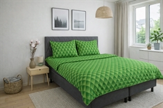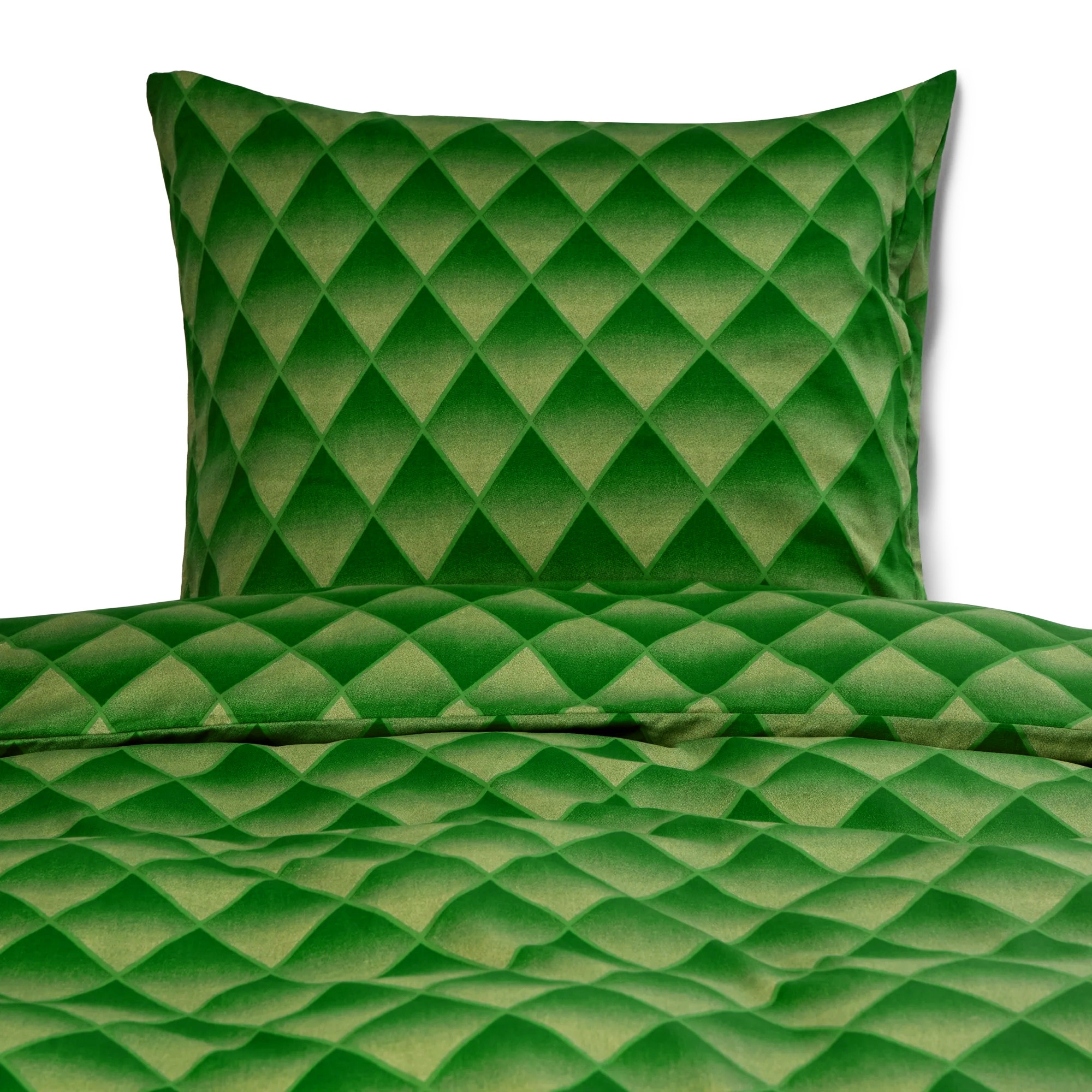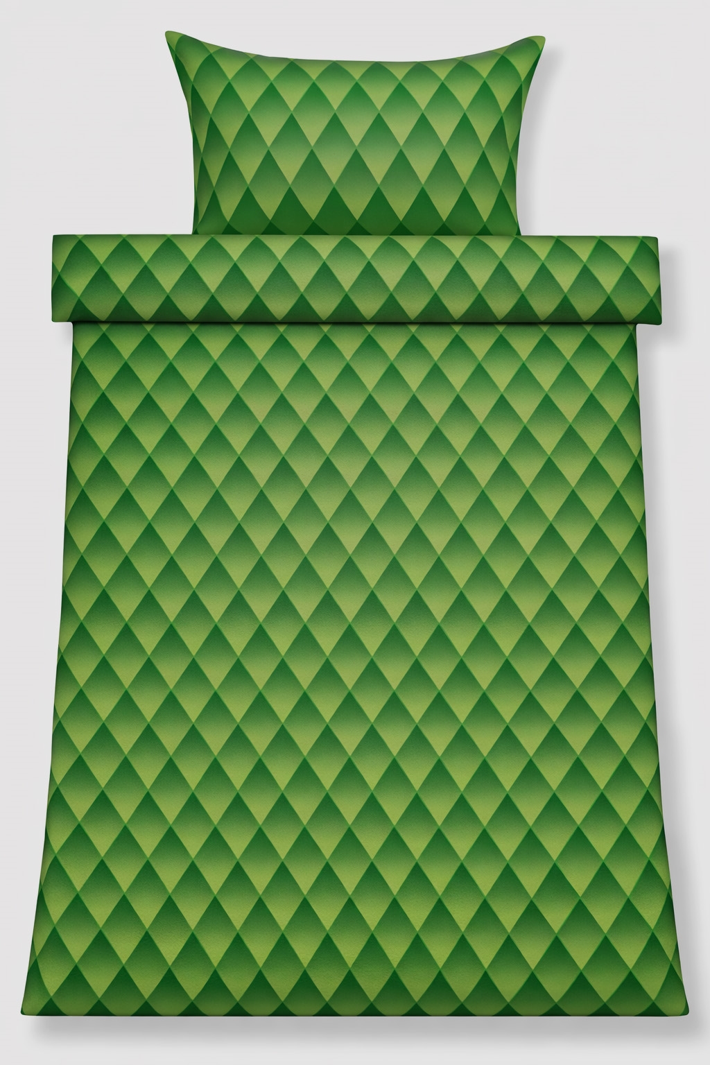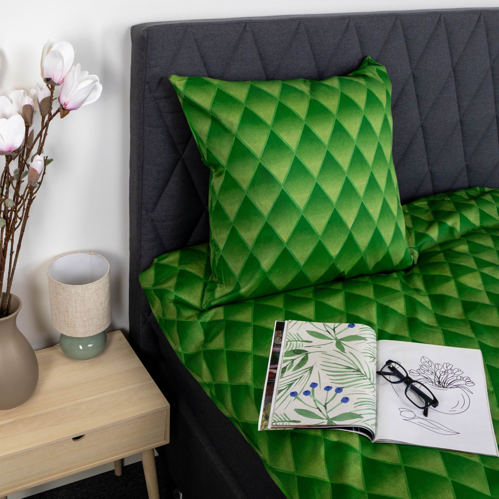 Gi soverommet et eksklusivt og moderne uttrykk med dette grønne harlekin sengetøyet i 100% bomullssatin. Det graderte diamantmønsteret skaper en flott 3D-effekt, hvor fargene glir harmonisk over i hverandre og gir sengen dybde og karakter. Et sengesett som både tilfører personlighet og eleganse til din innredning.