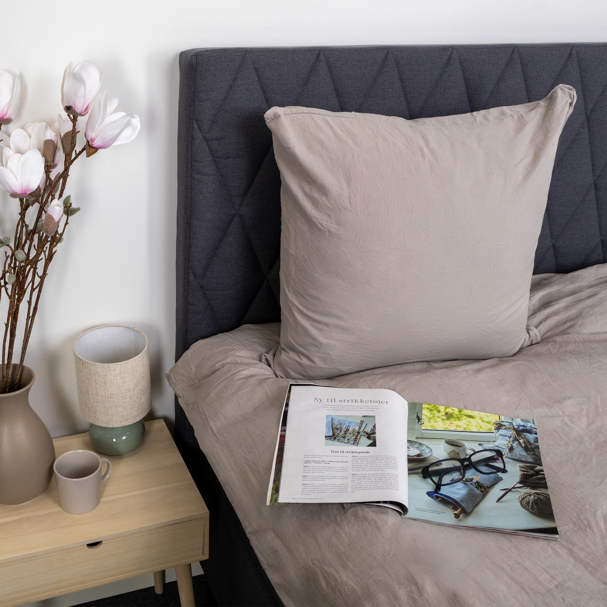 Dyne- og putetrekk lukkes med innvendig skjult glidelås, noe som gir et stilrent uttrykk og gjør det enkelt å skifte sengetøy. Den grå nyansen og det ensfargede designet gjør sengetøyet lett å kombinere med både lyse og mørke elementer på soverommet.