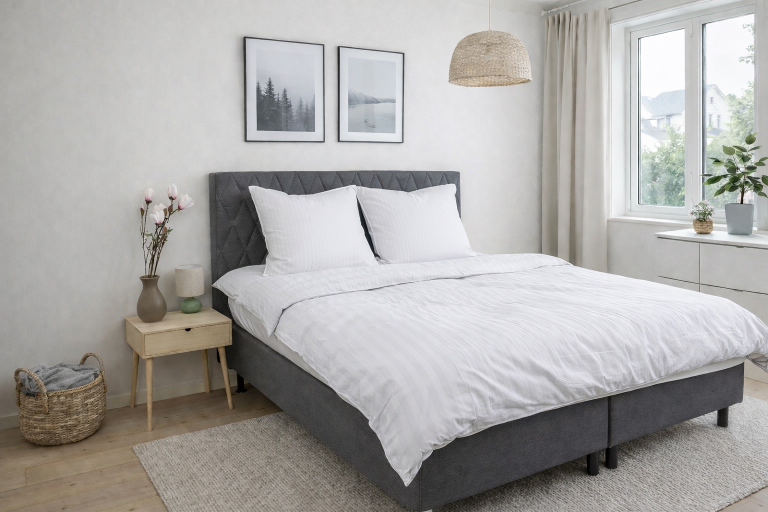 Skap et elegant og eksklusivt uttrykk på soverommet med dette hvite stripete sengetøyet i 100% bomullssatin. Sengetøyet kombinerer klassisk design med høy komfort og er laget for deg som ønsker både luksus og funksjonalitet i hverdagen.