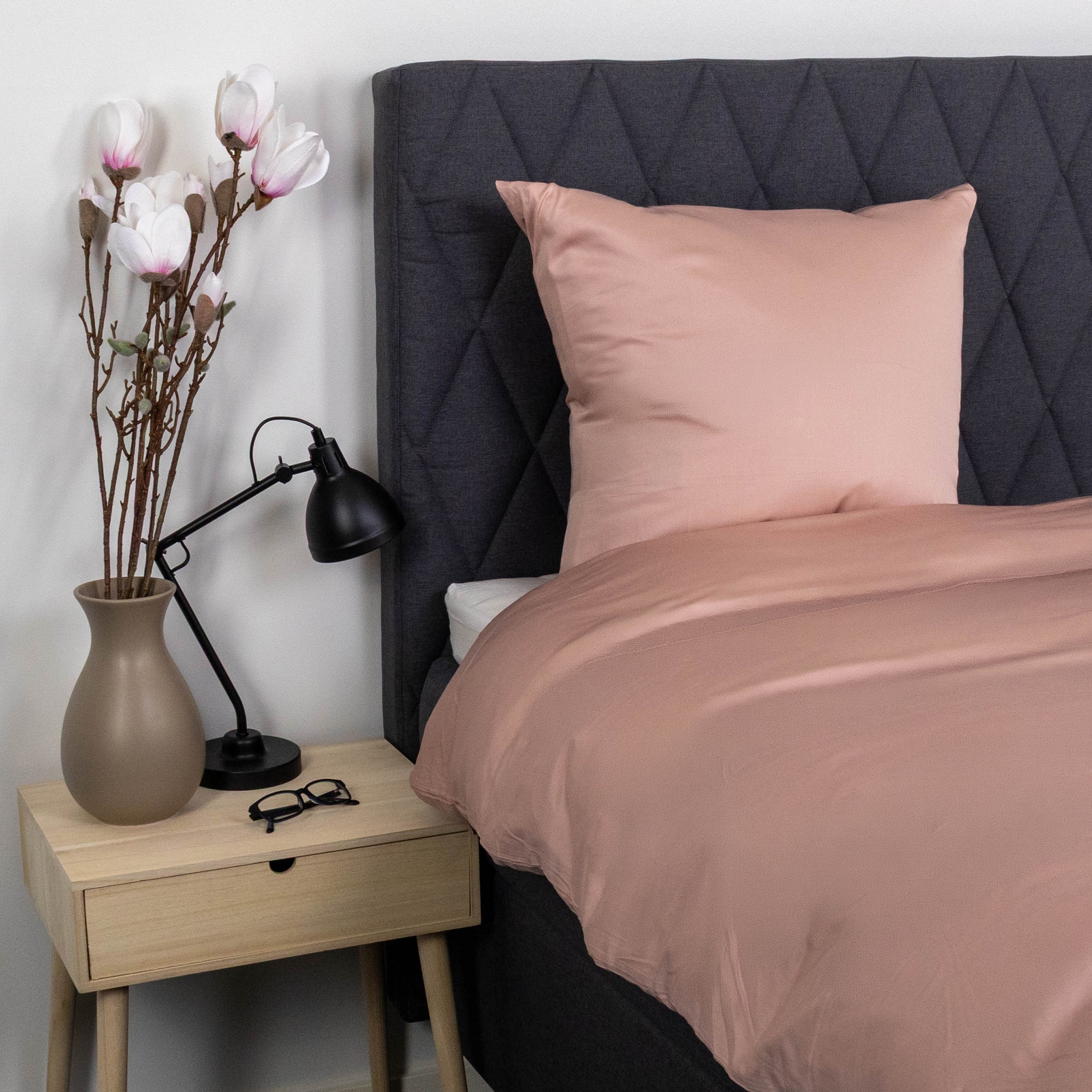 Et glansfullt, tettvevd og utrolig mykt sett med sengetøy av bambus i moderne, tidløse og rolige farger som passer perfekt inn i enhver innredning. Det myke sengesettet laget av 100 % naturlig bambus ser ikke bare flott ut, men er også en sann nytelse å sove med. Sengetøy av bambus er ekstra pustende, absorberende, temperaturregulerende og ikke minst svettetransporterende, og kan derfor enkelt oppfylle dine krav til en god og optimal natts søvn. Bambus har antibakterielle egenskaper og bidrar til å bekjempe bakterier. Dette gjør sengetøyet egnet for allergikere og personer med sensitiv hud, da bambusens naturlige egenskaper gir en beroligende atmosfære der støvmidd ikke kan trives.