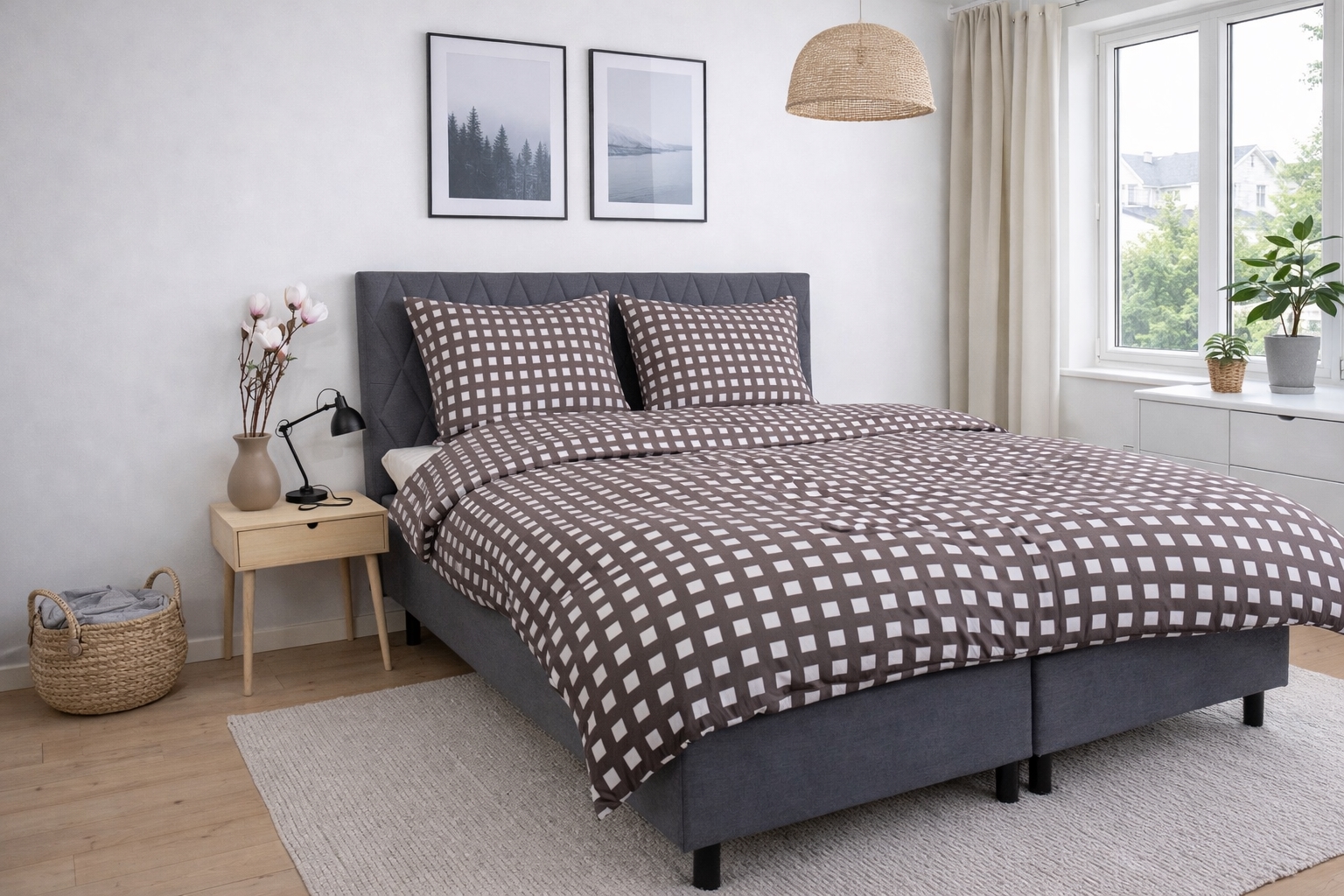 Sengetøy av bambus - 100% naturlig bambus - 140x220 cm - Rutete grå - Satengvevd sengesett