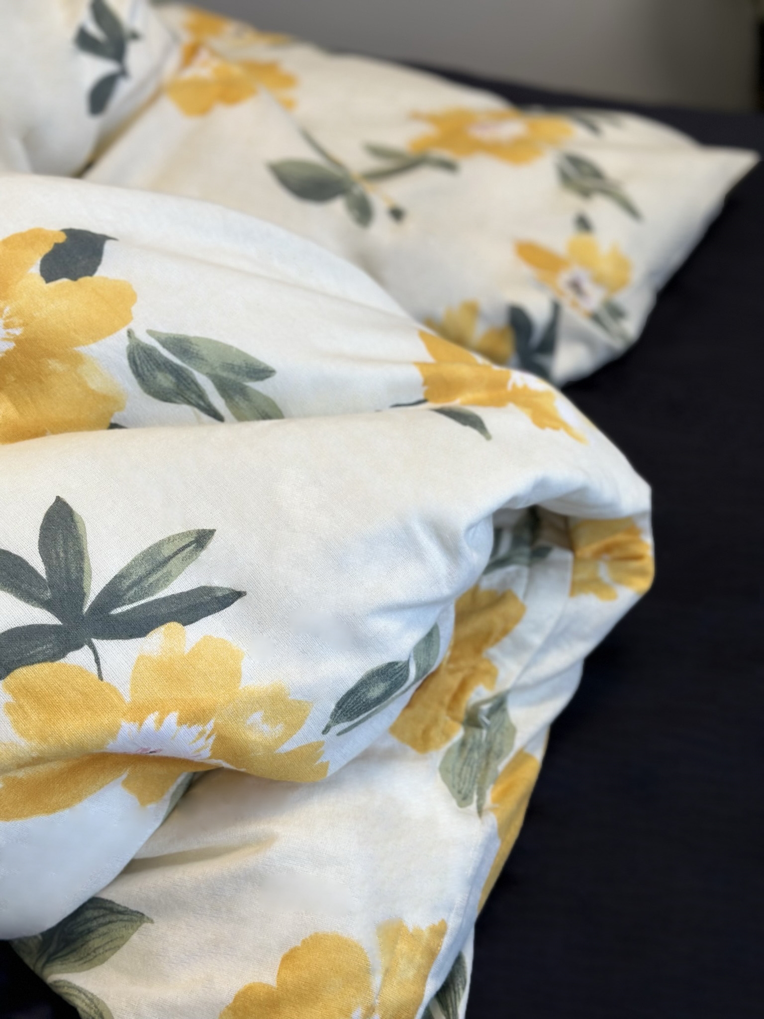 Sengetøy av flanell - 140x220 cm - Blomstrete sengetøy gul - 100% bomull - Gardenia gul - Nordstrand Home sengesett