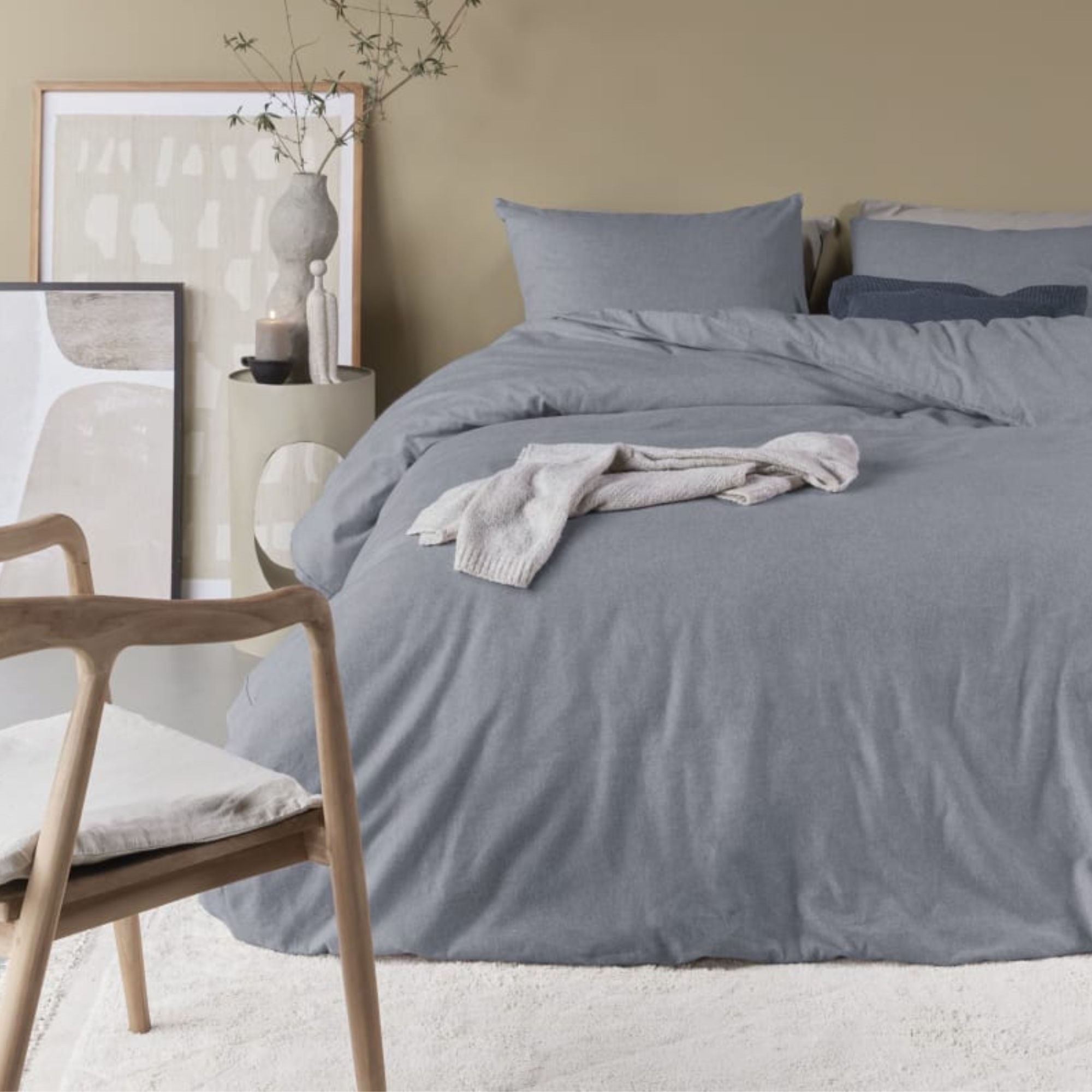 Forside »Sengetøy » Enkelt sengetøy » Enkelt sengetøy 140x200 cm Sengetøy av flanell 140x200 cm - Blågrått ensfarget sengesett - 100% bomulls flanell - Frost Beddinghouse sengetøy 100% bomullsflanell Spar25% Beddinghouse 799,00599,00NOKSpar 200,- På lager Trustpilot Antall Legg i kurv Se mer fra: Beddinghouse Artikkelnummer:338646-1 Les vår sengetøyguide Se vårt store utvalg av laken Se vårt store utvalg av dyner 140x200 Har du spørsmål om produktet? Pustende og behageligEkstra mykt og varmtSlitesterkt bomull Dynetrekk: 140x200 cm Putetrekk: 1 stk á 60x63 cm Materiale: 100% bomullsflanell Vev: 220TC (Trådtetthet = antall tråder per kvadrattomme) Farge: Blågrå Design: Frost Merke: Beddinghouse Lukking: Dynetrekk med knapper, putetrekk med overlapp Vask: 40° Tørketrommel: Ja Tåler stryking: Ja Sertifisering: STANDARD 100 by OEKO-TEX® (11-38819). Din garanti for at produktet er fritt for helseskadelig kjemi. Mykt og lekkert sengesett produsert i 100% bomullsflanell. Den unike følelsen av flanell kommer når du børster overflaten av den fine bomullen. Det gjør flanellen lun og myk. Sengetøyet er laget av ekstra fin bomull, kjent for sin mykhet og høye slitestyrke. Sengetøy av flanell fra Bedding House er laget av 100% bomullsflanell, kjent for sin myke, lett oppkradsede og lodne overflate. Bomullsfibrene er børstet på overflaten, noe som skaper en ekstra myk og lodden overflate. Denne overflaten gir flanellsengetøyet sin karakteristiske og velkjente mykhet og varme, som bidrar til en deilig lun og behagelig soveopplevelse. Spesielt på kjølige netter er sengetøyet en favoritt, da 100% bomullsflanell er pustende og samtidig god til å holde på varmen. Sengetøyet er OEKO-TEX sertifisert. Det er din garanti for at sengetøyet er testet og fritt for skadelige stoffer, i tillegg er sengetøyet allergivennlig. Frisk opp sengen og soverommet med et flott og lekkert sengesett som dette. Benytt samtidig muligheten til å sikre deg maksimal sovekomfort ved å tilføre et nytt mykt laken av høy kvalitet. Du finner vårt store sortiment av kvalitetslaken her Tilbake til Enkelt sengetøy 140x200 cm