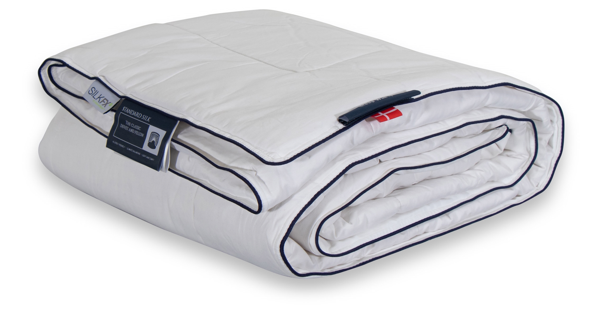 Forside »Dyner » Type dyne » Silkedyner Silkedyne 140x200 cm - Helårs varm - Nordic Comfort med 100 % mulberry silke Spar31% Nordic comfort 3.499,002.399,00NOKSpar 1.100,- På lager Trustpilot Antall Legg i kurv Se mer fra: Nordic comfort Artikkelnummer:0070 Les vår dyneguide Les om vedlikehold av dyner og puter Se vårt store utvalg av puter Har du spørsmål om produktet? Silkedyne - Standard SilkFra: Nordic Comfort100% rent mulberry silkefyll Størrelse: 140x200 cm Type: Varm silkedyne Merke: Nordic Comfort - standard silk Fyll: 100 % mulberry silke Silketetthet: 425 g/m² Fyllvekt: 1150 g Bolster: Myk bomull supercambric Vask: Ja, kan maskinvaskes (Viktig å bruke enzymfritt vaskemiddel) Garanti: 5 år Sertifisering: Crossvent og SilkFX Sertifisering: STANDARD 100 by OEKO-TEX® (SHHO 090844) Leveres i en eksklusiv bærepose Se alle våre silkeputer her Silkedynen er laget av SilkFX, med fyll av 100% Mulberry-silke og bolster av 100% bomull. Sommerdynen Silk Standard har SilkFX-teknologi, så du enkelt kan vaske dynen hjemme. Vi anbefaler Silk Standard til deg som ønsker den originale silkedynen, hvor du får maksimalt utbytte av de gode egenskapene. Denne silkedynen har 5 års garanti. Nordic Comfort® er vår bestselgende silkedyne! Det er en grunn til det, selvfølgelig. Evner: Luksuriøs silkefiber Opplev det ultimate innen sovemiljø Temperaturregulerende Forbedrer sunn og dyp søvn som tilpasser seg kroppstemperaturen din Allergivennlig Avviser husstøvmidd og allergener – færre allergiske reaksjoner Antibakteriell Renere og sunnere sovemiljø Fuktabsorberende Reduserer nattesvette og fuktig sovemiljø Pustende Lar kroppen din puste naturlig og reduserer overoppheting om natten Nordens mest solgte silkeprodukter er fra Nordic Comfort. Merket ble grunnlagt i 2007, og har som mål å produsere et deilig sortiment av silkeprodukter i høyeste kvalitet for forbrukeren. Med hjelp fra deres søvneksperter kan du oppnå en forbedret og optimal natts søvn. Tilbake til Silkedyner Du kan også være interessert i: Silkedyne 140x200 cm - Helårsdyne med 100 % langfibret morbærsilke - Nordic Comfort dyneSilkedyne - Superior silke Fra: Nordic Comfort 100 % langfibret morbærsilke Veiledende utsalgspris : 3.912,00 Spar : 913,00 4.299,00 NOK2.999,00 NOK Silkedyne 140x200 cm - Fyldig helårsdyne fra Nordic Comfort - Vaskbar silkedyneSilkedyne -3dsilk Fra: Nordic Comfort Tyk vamset silkedyne Veiledende utsalgspris : 2.753,00 Spar : 854,00 2.799,00 NOK1.899,00 NOK Sommer silkedyne 140x200cm - Sval sommerdyne med 100% mulberry silke fyld - Nordic Comfort dyneSommerdyne - Nordic Comfort Leveres med eksklusiv bæreveske 100% rent mulberry silkefyld Veiledende utsalgspris : 2.173,00 Spar : 774,00 2.299,00 NOK1.399,00 NOK