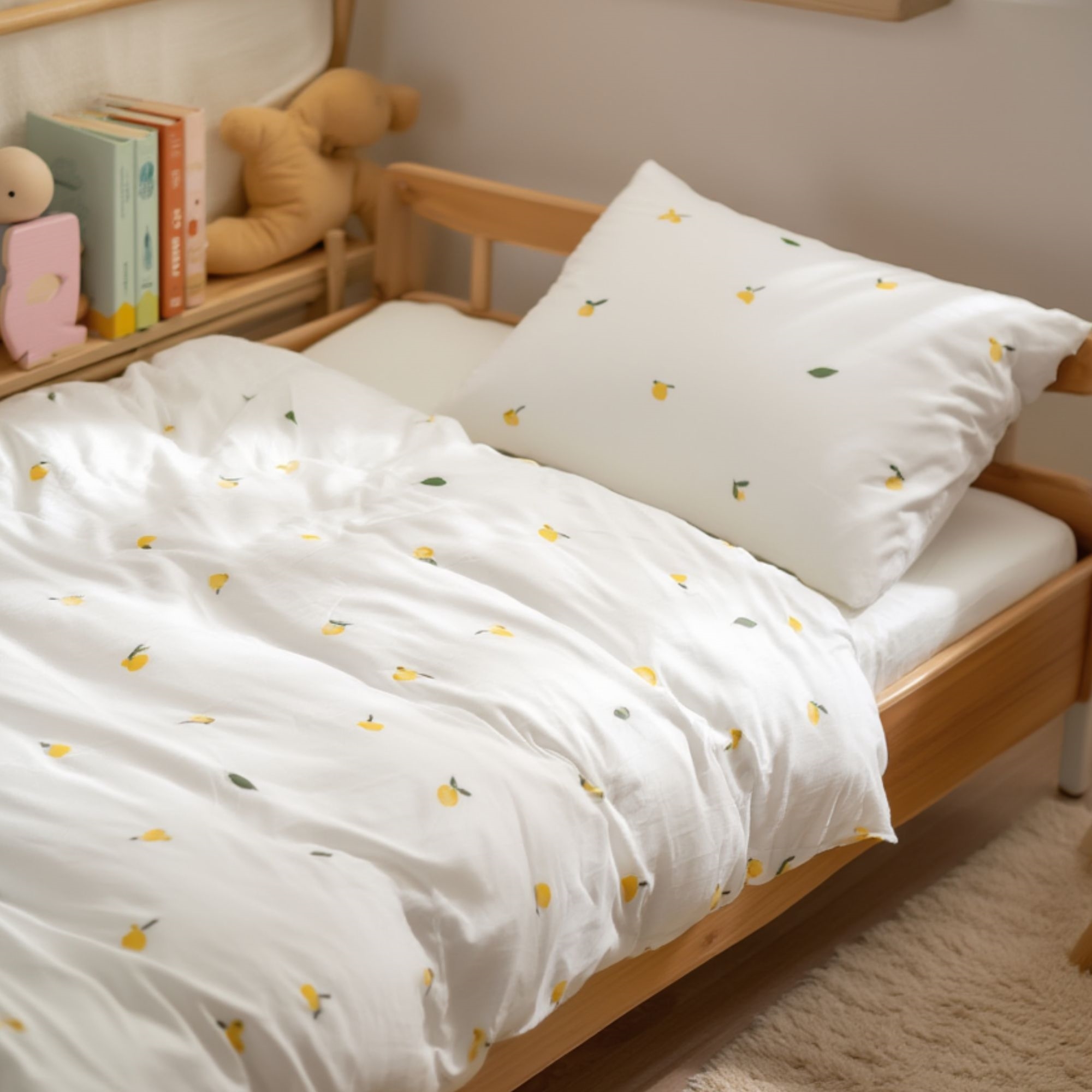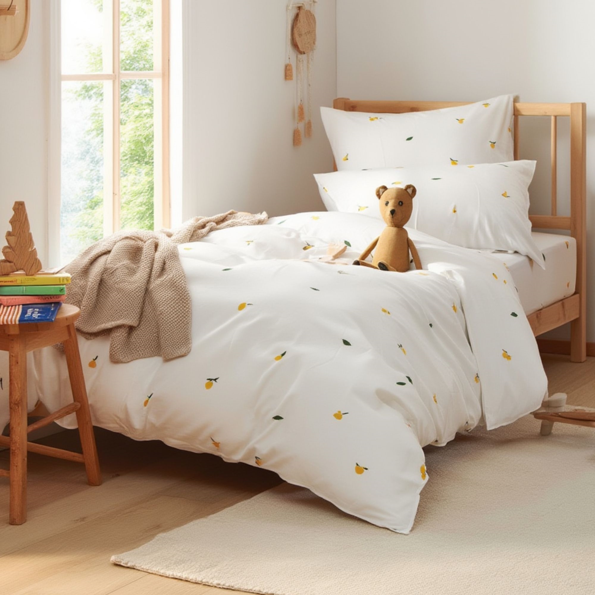 By Mats junior sengetøy 100x140 cm - beige med sitroner
