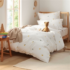 Sengesettet er laget i 100% myk bomull, som er pustende og behagelig mot barnets hud. Bomullens naturlige egenskaper hjelper med å regulere temperaturen i løpet av natten, så barnet ditt får en komfortabel og rolig søvn - året rundt.