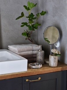 Forside »Pyntegjenstander Sminkespeil - Stein fra Halvor Bakke - Sanders - Høyde 35 cm Spar50% Halvor Bakke 599,00299,00NOKSpar 300,- Få på lager Trustpilot Antall Legg i kurv Se mer fra: Halvor Bakke Artikkelnummer:108357 Se vårt utvalg av håndklepakker Se vårt utvalg av oppbevaring til badet Har du spørsmål om produktet? SminkespeilZoom-effekt35x17 cm Type: Sminkespeil Størrelse: 35x17 cm Farge: Krom Materiale: Krom og stein med marmoreffekt Klassisk kosmetikkspeil – eleganse for badet ditt Dette Halvor Bakke kosmetikkspeilet er designet for å gi badet ditt et snev av eleganse. Med sitt klassiske runde design og en høyde på 35 cm er det både praktisk og stilig. Speilet er vendbart, slik at du kan se ansiktet ditt forstørret på den ene siden. Dette er ideelt for påføring av sminke og hudpleierutiner. Vendbart speil Det smarte med dette kosmetikkspeilet er det vendbare designet. Dette lar deg bytte mellom et vanlig speil og et forstørret speil. Den forstørrede siden er ideell for presis sminkepåføring og detaljert hudpleie. Denne funksjonen gjør speilet både funksjonelt og allsidig. Ta også en titt i kategorien Baderomstilbehør. Tilbake til Pyntegjenstander