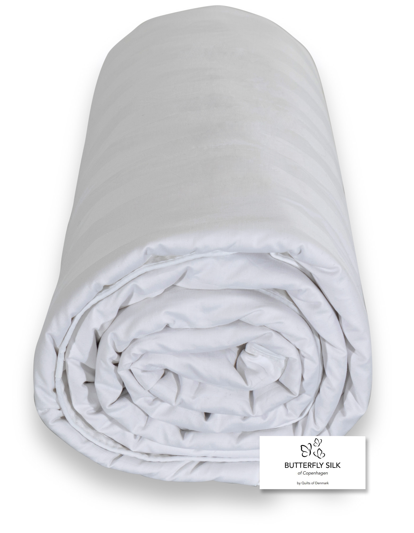 Forside »Dyner » Type dyne » Silkedyner Sommer silkedyne 140x220 cm - Butterfly Silk dyne med 100% morbærsilke Spar7% Butterfly Silk 1.699,001.585,00NOKSpar 114,- På lager Trustpilot Antall Legg i kurv Se mer fra: Butterfly Silk Artikkelnummer:1111031 Les vår dyneguide Les om vedlikehold av dyner og puter Se vårt store utvalg av puter Har du spørsmål om produktet? Sommerdyne - Butterfly SilkLeveres i eksklusiv bæretaske100 % morbærsilke Størrelse: 140x220 cm - enkeltdyne med ekstra lengde Type: Sommer silkedyne Merke: Butterfly Silk - Sommer silkedyne Silketetthet: 175g/m2 Fyllvekt: 530g Fyll: 100 % morbærsilke Bolster: 100 % myk stripete bomullscambric Vask: Kun profesjonell våtrens Allergivennlig: Ja Garanti: 10 år Leveres i eksklusiv oppbevaringstaske Sertifisering: STANDARD 100 by OEKO-TEX® (1176-194DTI) Se alle våre silkeputer her Det er mange dokumenterte fordeler med silke! Allergivennlig Anti-bakteriell Fuktabsorberende Temperatur regulerende Avledende Sommerdynen har et trekk av 100 % stripete bomullscambric. Vi anbefaler Butterfly Silk til deg som ønsker den originale silkedynen, hvor du får mest mulig ut av de gode egenskapene til en gunstig pris. Hvis du har en tendens til å bli varm om natten, vil denne sommer silkedynen være et godt alternativ. De fint vevde silketrådene gjør at kroppen lett kan kvitte seg med overskuddsvarme og sørger for behagelig temperatur gjennom natten. Se vårt store utvalg av sengetøy i 140x220 cm her Silkedyner er temperaturregulerende, ekstremt fuktabsorberende og allergivennlige. Silkedynen er fylt med 100 % morbærsilke. Morbær silke anses som den beste typen silke til å produsere dyner av. Butterfly Silk er et dansk merke med et stort utvalg av de lekreste silkeprodukter. Silkedynerne kommer i mange udgaver, alle med 100% morbær silkefyld, så der er en dyne der matcher lige præcis det behov du har. Om det er en almindelig silkedyne, luksus silkedynen eller den ekstra åndbare bambus/silke serie, så finder du det fra Butterfly Silk. De silkeprodukter, som du finder i vores sortiment, fremstilles udelukkende af 100% morbærsilke, og selve fremstillingsprocessen foregår uden brug af kemikalier. Dette sikrer, at produkterne er af absolut højeste kvalitet og ikke indeholder skadelige stoffer. Derfor er silkeprodukter ideelle for både barn og voksne med allergi. Tilbake til Silkedyner Du kan også være interessert i: Silkedyne 140x200 cm - Helårsdyne med 100 % langfibret morbærsilke - Nordic Comfort dyneSilkedyne - Superior silke Fra: Nordic Comfort 100 % langfibret morbærsilke Veiledende utsalgspris : 3.912,00 Spar : 913,00 4.299,00 NOK2.999,00 NOK Silkedyne 140x200 cm - Helårsdyne med silketrekk - Nordic Comfort 100% langfibret mulberrySilkedyne - Excellence silke Fra: Nordic Comfort Håndlaget - Langfibret mulberry silke + silkebolster Veiledende utsalgspris : 5.797,00 Spar : 798,00 8.999,00 NOK4.999,00 NOK